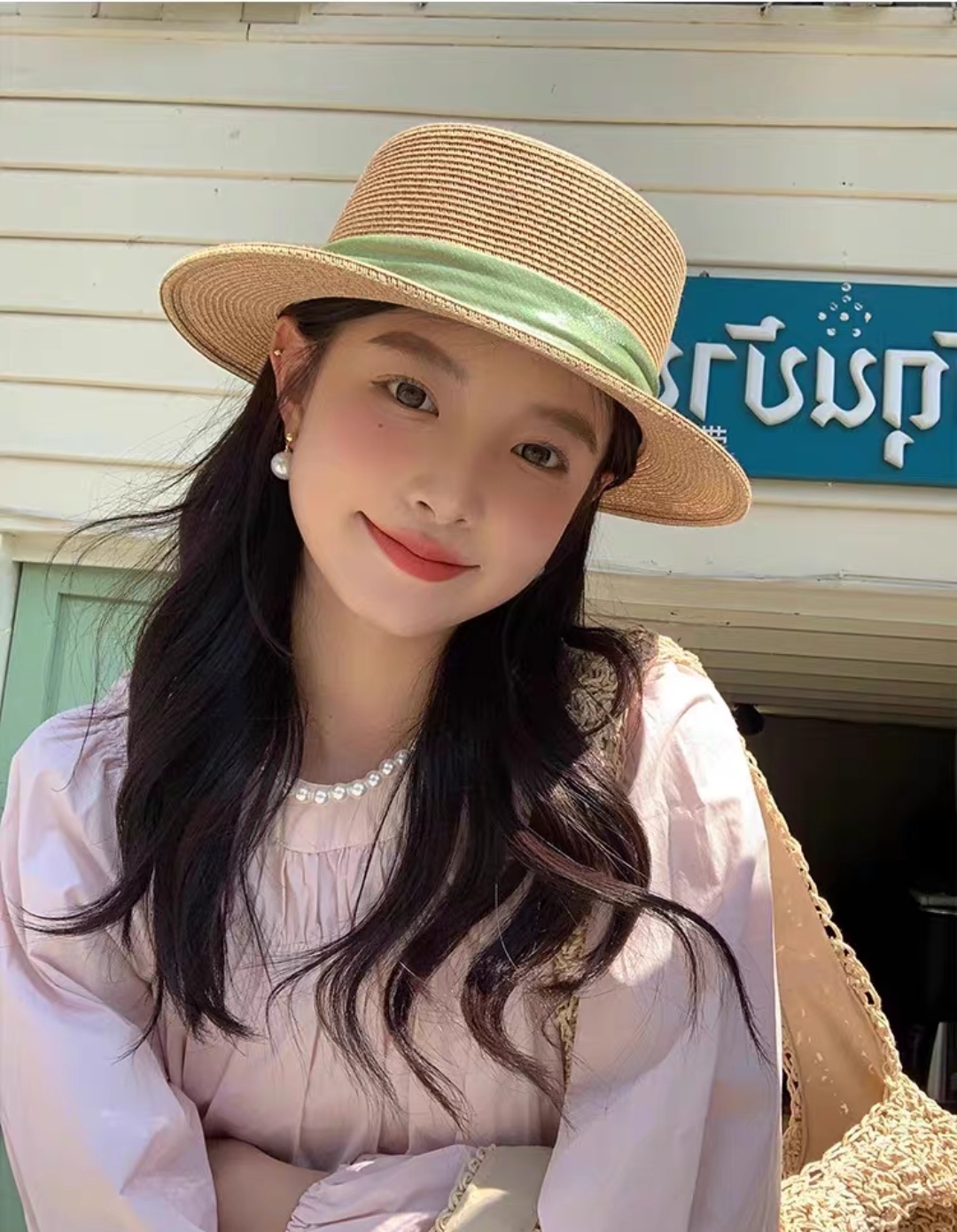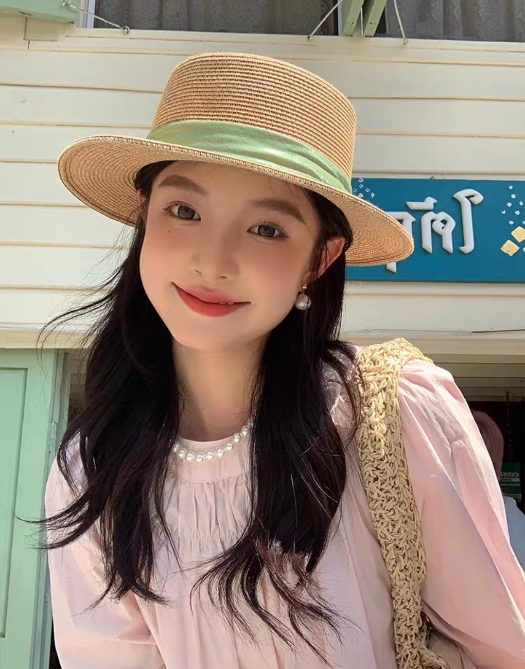 Mũ cói rơm vành phẳng nữ mùa hè phiên bản Hàn Quốc chống nắng UV cho kỳ nghỉ Nón đi biển Paris thời trang hàng đầu Pháp Chất liệu cói