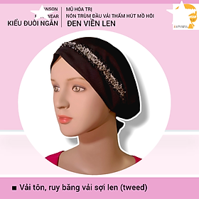 TÊN SẢN PHẨM: Nón hóa tri., mũ hóa tri., vải hút mồ hôi, thoáng mát, mềm mịn [KIỂU ĐUÔI NGẮN-ĐEN VIỀN LEN]