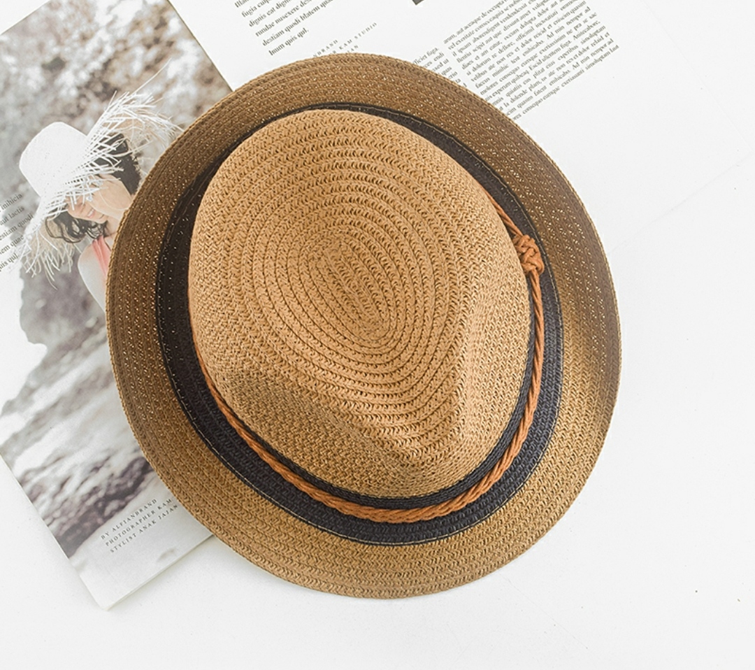 Nón phớt mũ cao bồi nam nữ vành nhỏ cói đai đen da nâu Chất liệu cói