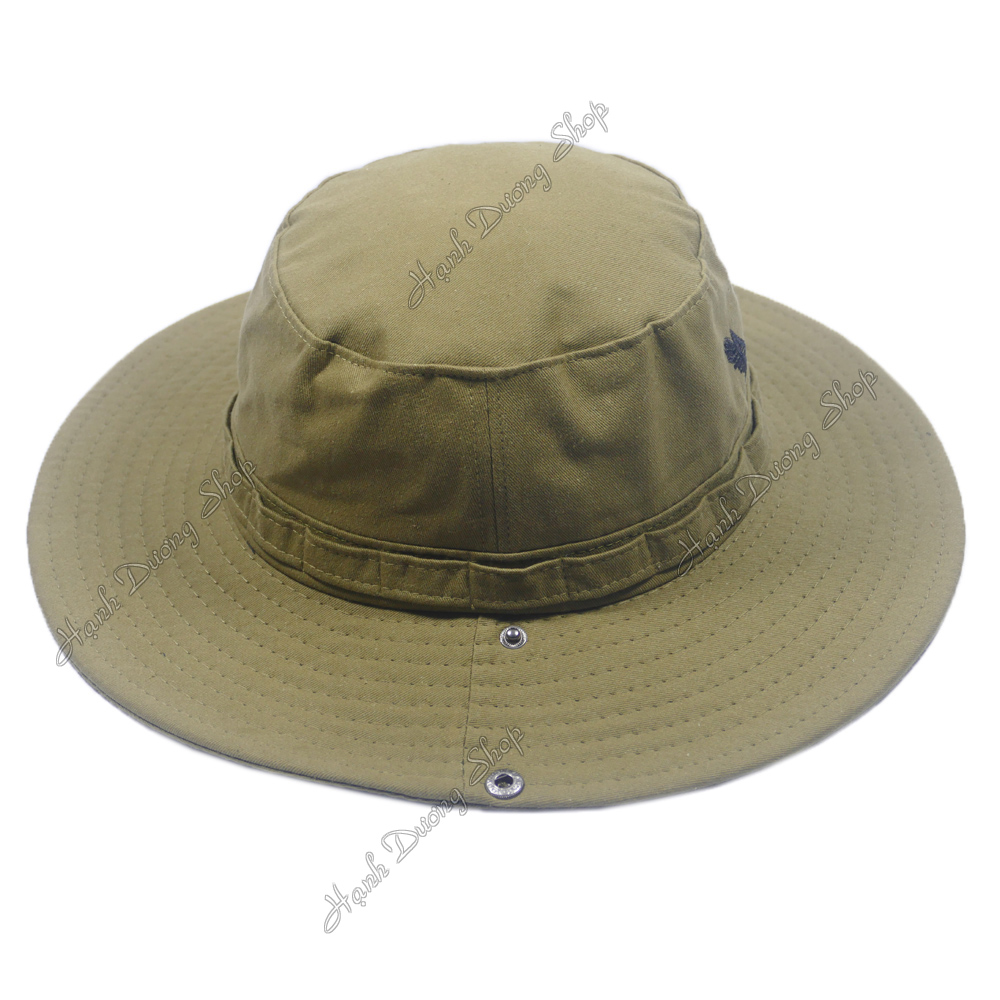 Vải Kaki dày dặn nhưng không nóng vì là 100%cotton. Có dây đeo không lo gió bay. Nút bấm kim loại 2 bên vành nón để bẻ lên cho ngầu luôn. Shop nhận thêu logo