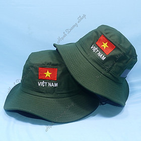 Nón tai bèo nam rộng vành thêu lá cờ Việt Nam, chất liệu vải kaki bền đẹp, bên hông có lỗ thông gió - Hạnh Dương Đặc điểm nổi bật: - Phù hợp cho cả