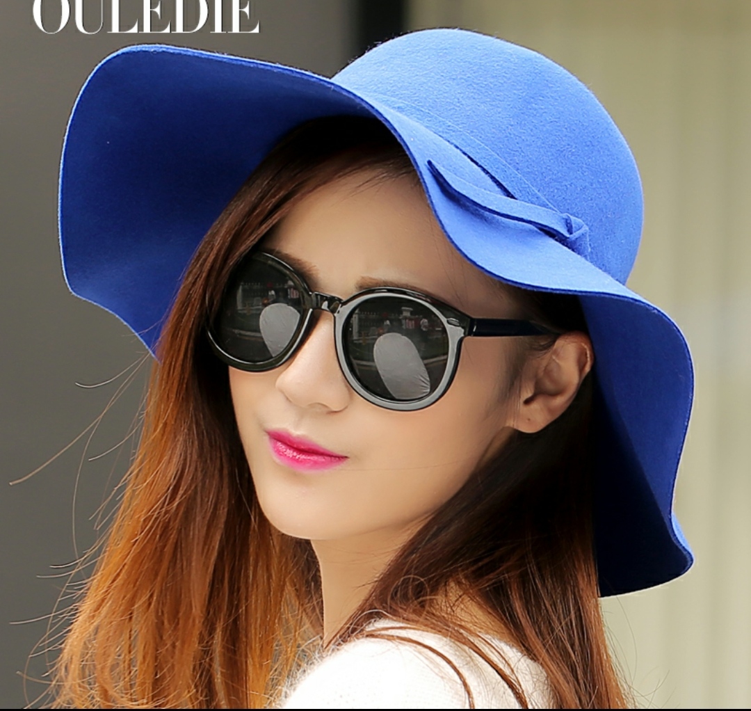 Mua tại TiktokNón mũ nữ rộng vành đi biển chống nắng fedora màu xanh nỉ thời trang Hàn Quốc Chất liệu nỉ