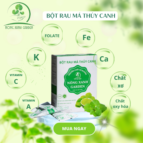 Mua tại TiktokHộp Bột Rau Má Thủy Canh Nguyên Chất Có Đường Nông Xanh Garden 45GR Tiếp nối sứ mệnh chăm sóc sức khỏe và sắc đẹp cho cộng đồng, Nông Xanh Garden cho ra mắt thêm dòng sản phẩm thực phẩm bổ sung Rau má thủy canh nguyên chất có đường được kết hợp hài hòa giữa hương vị ngọt thanh của đường cỏ ngọt với 100% nguyên liệu rau má thủy canh tươi được làm sạch bằng phương pháp sục Ozone kết hợp kỹ thuật sấy lạnh và công nghệ nghiền cối đá siêu mịn từ Nhật Bản nên giữ nguyên vẹn được giá trị dinh dưỡng của rau má nguyên chất.