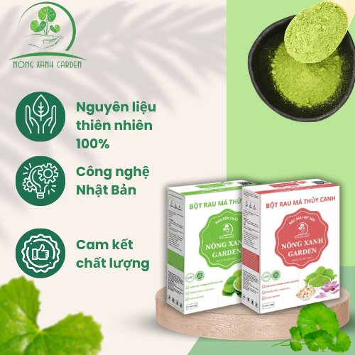 Mua tại TiktokCombo 2 Hộp Bột Rau Má Thủy Canh Nguyên Chất + Hạt Sen Nông Xanh Garden Thực phẩm bổ sung Bột rau má với thành phần từ Rau má thủy canh tươi sau khi thu hoạch. Sản phẩm thực phẩm bổ sung Bột rau má thủy canh hạt sen được kết hợp hài hòa giữa hương vị thanh mát của hạt sen, vị béo ngậy của nước cốt dừa và rau má thủy canh tươi được làm sạch bằng phương pháp sục Ozone kết hợp kỹ thuật sấy lạnh và công nghệ nghiền cối đá siêu mịn từ Nhật Bản nên giữ nguyên vẹn được màu sắc, hương vị và giá trị dinh dưỡng của rau má.