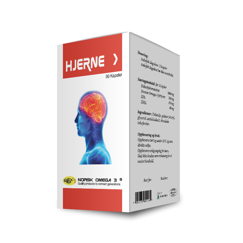 Omega 3 NORSK HJERNE 30 Viên Thành phần có trong 2 viên NORSK HJERNE Fiskeoljekonsentrat 1000mg Hvorav Omega-3-fettsyrer 700mg EPA 470mg DHA 80mg - Ingredienser:Fiskeolje,gelatin(storfe), - glycerol, antioksidant,blandede tokoferoler. CÔNG DỤNG: Giúp bổ sung