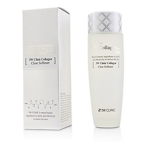 • 3W Clinic Collagen Clear Softener với hàm lượng collagen cao có khả năng bổ sung lượng collagen thiếu hụt do quá trình tổng hợp bị dán đoạn, giúp da tươi trẻ và sáng mịn hơn.