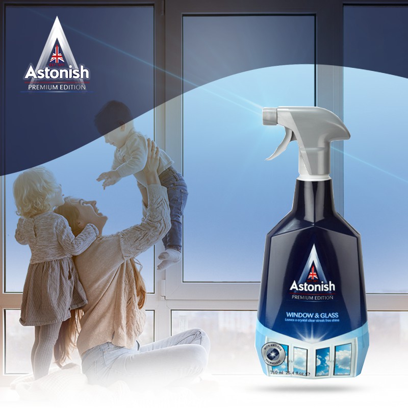 Dùng để lau vệ sinh mọi bề mặt kính. Sản xuất 100% tại Anh Quốc bằng công thức đặc biệt, giúp loại bỏ nhanh chóng các vết bẩn, vết ố trên kính, ngay cả những vết bẩn cứng đầu như dầu nhớt, hay vết băng keo dính. Thêm một công năng đặc biệt nữa, là có thể lau sạch vết ố mờ do cặn khoáng có trong nước để lại trên vách kính phòng tắm. Với tính năng hoạt động bốc hơi nhanh, giúp cho bề mặt kính nhanh khô, việc lau chùi vệ sinh bề mặt kính nhanh chóng và dễ dàng, tiết kiệm thời gian và công sức, trả lại bề mặt kính trong suốt không một vết mờ.