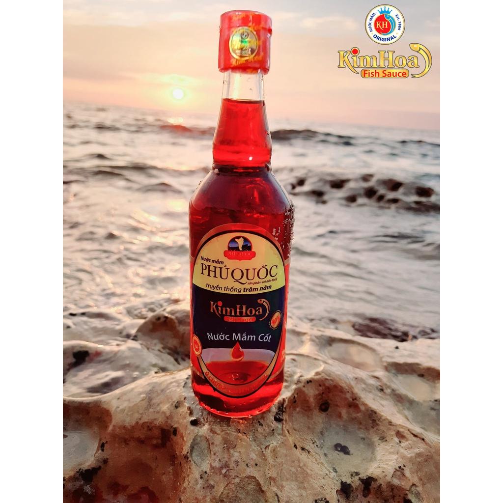 Khác với các loại nước mắm pha chế công nghiệp có sử dụng nhiều chất điều vị và phẩm màu, Nước Mắm Kim Hoa được làm 100% từ Cá Cơm tại vùng đảo Phú Quốc - là loại cá cơm giàu đạm, tươi ngon. Cá cơm sau khi được đánh bắt lên sẽ được ướp ngay trên tàu theo tỷ lệ 3 cá 1 muối, khi thuyền cập bến cá được đưa lên thùng, kiểm tra độ mặn và tiến hành gài nén - ủ chượp trong thùng gỗ đặc trưng. Quá trình này bắt buộc phải từ 12 tháng trở lên, để cá được thuỷ phân hoàn toàn, khi đó nước mắm được kéo rút ra sẽ có màu cánh gián đặc trưng, hương vị đậm đà và cái hậu ngọt của đạm cá được lắng đọng và cảm nhận rõ nơi cuống họng. Chính vì thế, nhiều khách hàng trước có thói quen sử dụng nước mắm công nghiệp khi nếm nước mắm Kim Hoa lần đầu sẽ cảm thấy mặn.