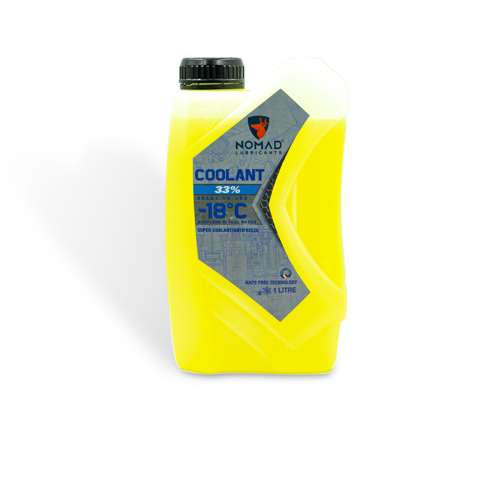 Nước làm mát ô tô, xe máy Nomad Coolant 33% (-18 độ C) được sản xuất từ gốc Ethylene Glycol – là hoạt chất có khả năng tăng cường khả năng tản nhiệt cho động cơ và hạ thấp nhiệt độ đóng băng xuống -18 độ C so với Ethylene Glycol nguyên chất (nhiệt độ đóng băng tại -12 độ C). Do đó, Nomad Coolant 33% đạt công dụng tản nhiệt vượt trội cho động cơ, lượng nhiệt dư thừa khi động cơ vận hành sẽ được dung dịch hấp thu, vận chuyển vào bộ tản nhiệt và giải phóng khỏi động cơ hiệu quả.