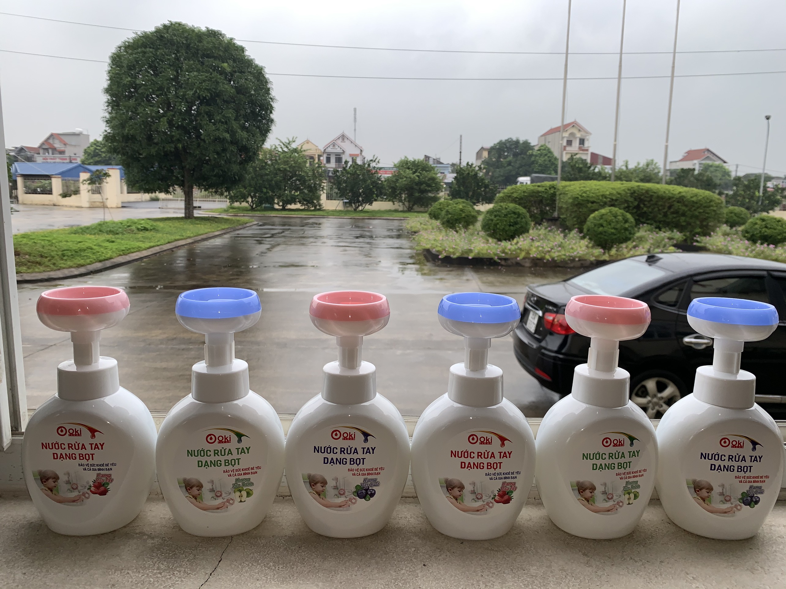 - KHÔNG phẩm màu Công Dụng: Có khả năng diệt được 99,99% vi khuẩn có hại và đồng thời kéo trôi đi các chất dơ bẩn trên tay. Bọt tuyết sử dụng tiết kiệm hơn tới 3 lần so với các sản phẩm thông thường khác nhờ thiết kế đặc biệt của bơm tạo bọt. Không chứa xà phòng, không chứa xút, độ PH cân bằng giúp bảo vệ làn da nhạy cảm nhất của bé. Mùi hương tự nhiên dịu nhẹ rất dễ chịu Đặc biệt có tính khử độc tốt, ngay cả khi vừa dùng xong vẫn có thể cầm nắm thức ăn, đồ dùng mà không gây độc. Tác dụng làm sạch và khử trùng da tay. An toàn cả với những làn da nhạy cảm nhất là khi dùng cho trẻ em. Cách Dùng : Nước rửa tay dạng bọt OKI Bước 1: Tháo khoá vòng trên cổ chai Bước 2: Đặt lòng bàn tay phẳng trên nắp. Nhấn 1 lần nhẹ nhàng từ trên xuống. Lưu ý: Giữ tay khô trước khi nhấn nắp Bước 3: Xoa đều tay cho tan hết bọt hoa Bước 4: Rửa sạch với nước. Quy cách đóng gói: chai Thể tích: 500g Hương Việt Quất. Hạn sử dụng: 3 năm kể từ ngày sản xuất Chỉ cần lấy 1 lượng nước thích hợp ra tay và chà sát nhẹ nhàng Dùng cho cả gia đình, trẻ em dùng dưới sự giám sát của người lớn. Xuất xứ: Việt Nam Giá: 99k̵ --->75k / chai hình bông hoa, hình chân gấu 500g ( màu nắp ấn ngẫu nhiên) Lưu ý: