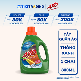 Nước Tẩy Quần Áo Màu Axo Xanh Lá Hương Thông Xanh Chai 800mlNước Tẩy Quần Áo Màu Axo Xanh Lá Hương Thông Xanh Chai 800ml có công thức chuyên dụng cho quần áo màu, giúp tẩy sạch nhẹ nhàng các vết bẩn ...