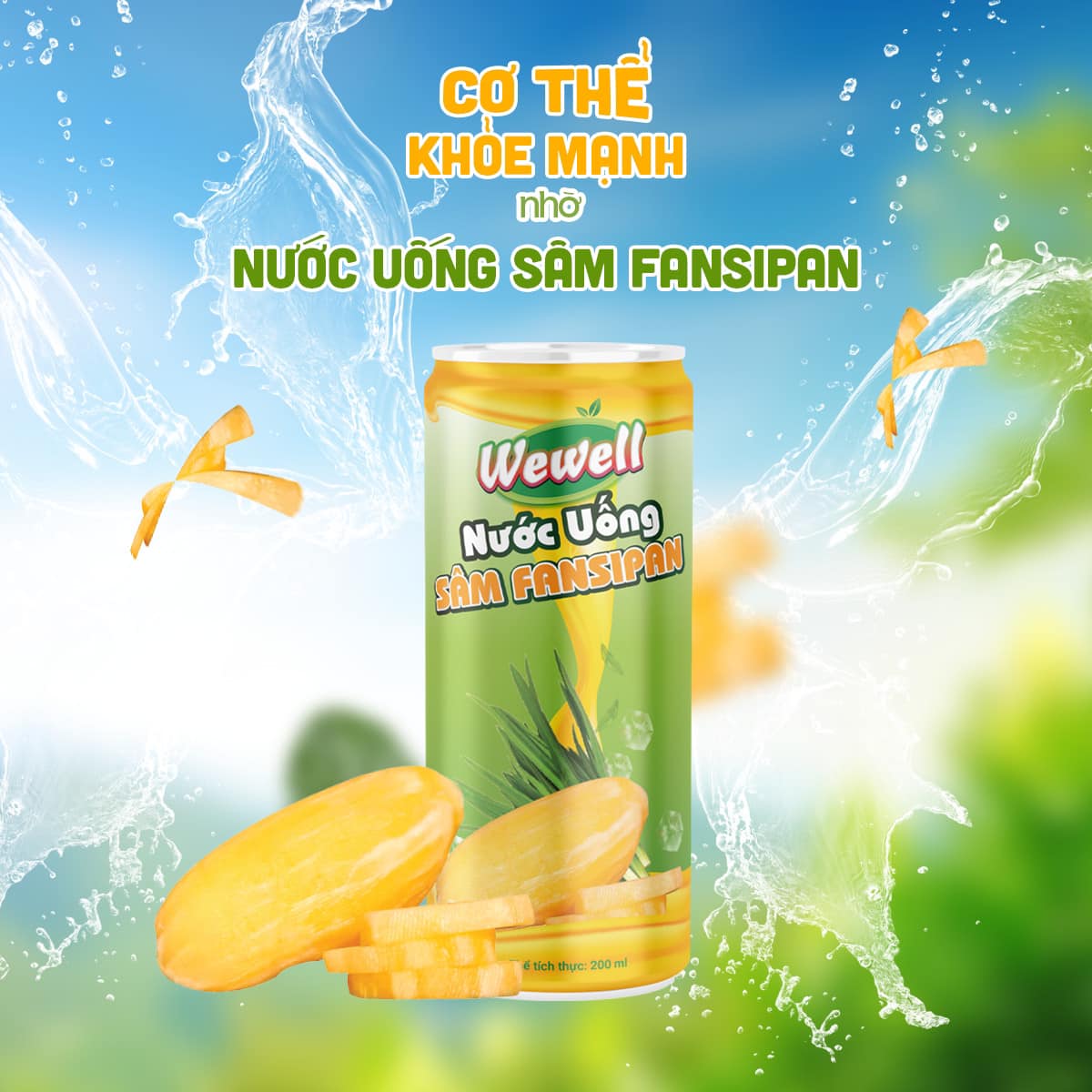 - Xuất xứ: Việt NamSản phẩm thực phẩm bổ sung Nước uống Sâm Fansipan đóng lon thương hiệu Wewell của công ty cổ phần Dược liệu và thực phẩm Việt Nam Số TCCS: 01/2022/TPTVHE Thành phần cấu tạo: Sâm Fansipan (20%), Cát căn, Đẳng sâm, Sâm dứa, Magie, hương dưa, đường mía và nước tinh khiết. Đối tượng sử dụng:Trẻ em trên 2 tuổi và người lớn – Trẻ em từ 2-6 tuổi: sử dụng 1-2 lon/ngày – Trẻ em trên 6 tuổi và người lớn: sử dụng 1-5 lon/ngày Qui cách đóng gói: 24 lon/thùng (200 ml/lon) “Sản phẩm được sản xuất trên dây chuyền công nghệ hiện đại đạt GMP thực phẩm bảo vệ sức khỏe, HACCP 2020 Chúng tôi cam kết đem đến cho bạn sản phẩm an toàn và đảm bảo chất lượng Khuyến cáo: sản phẩm có thể có thành phần tự nhiên không tan, không ảnh hưởng đến chất lượng sản phẩm. Không sử dụng sản phẩm khi quá hạn. Không sử dụng cho người mẫn cảm với bất cứ thành phần nào của sản phẩm Sản phẩm đã mở bảo quản lạnh sử dụng trong vòng 24 giờ.
