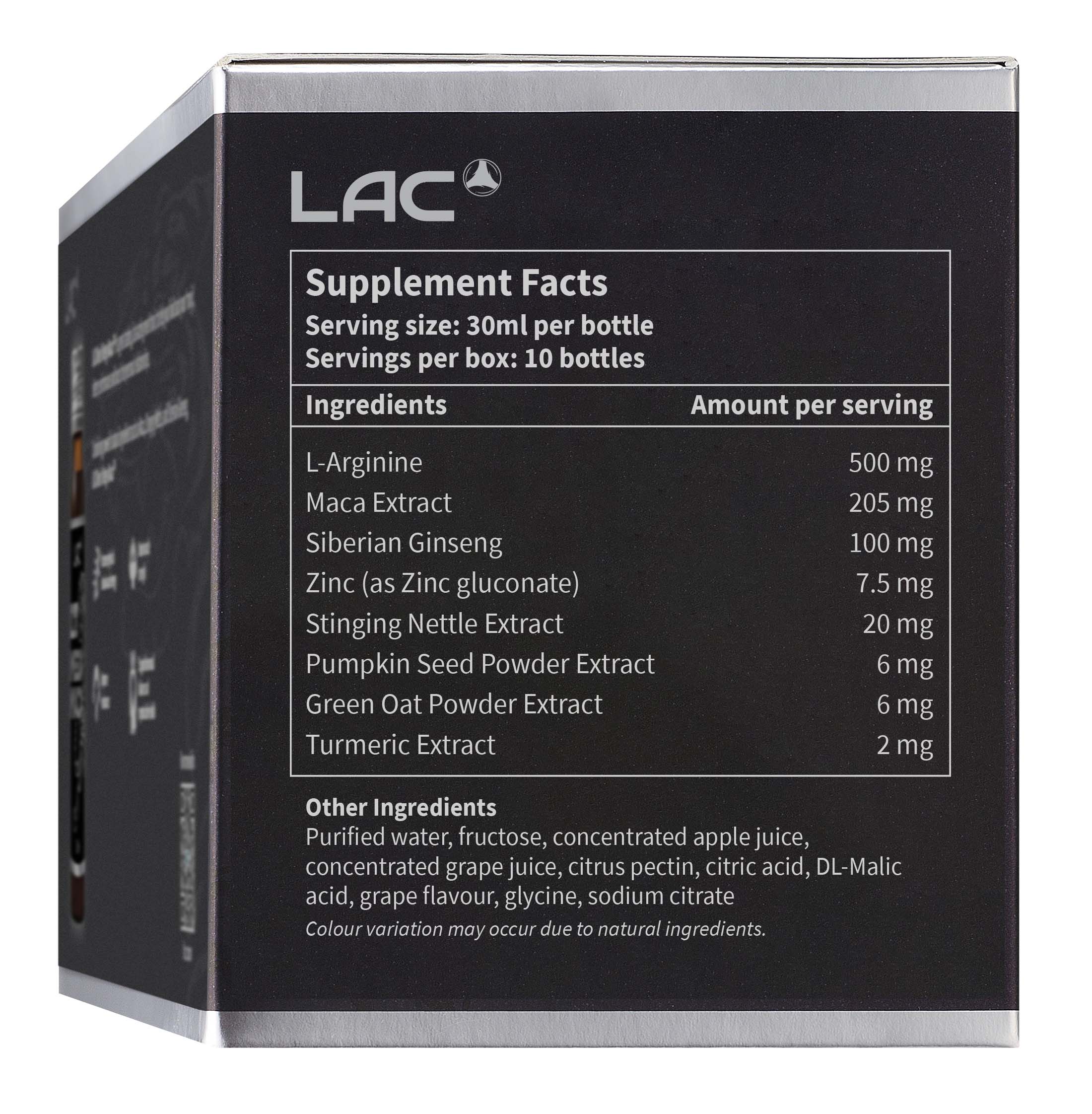 NƯỚC UỐNG TĂNG CƯỜNG SỨC KHỎE, SINH LỰC VÀ THỂ TRẠNG DÀNH CHO NAM GIỚI LAC MEN'S MEGA MACA (30ML X 10 CHAI) là sản phẩm bổ trợ sức khỏe dành cho nam giới - tác dụng nhanh trong 1 giờ, giúp tăng cường năng lượng, phục hồi sinh lực và giảm căng thẳng tức thì