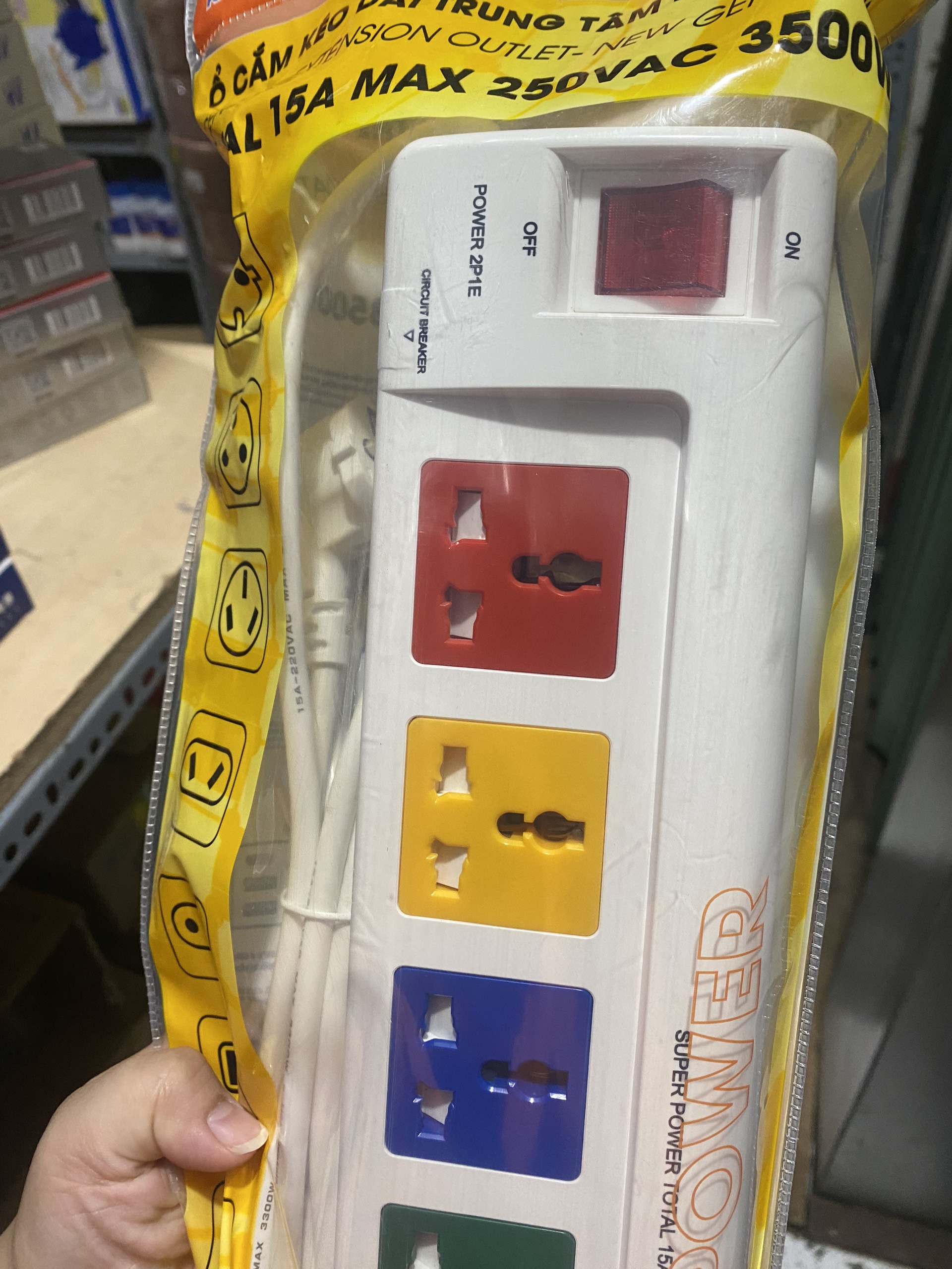 Loại: 4 ổ 3 chấu ( có nắp che) Chiều dài dây:  3 mét Màu sắc: Trắng và Đen Dây dẫn ĐỒNG NGUYÊN CHẤT, ĐÚNG TIẾT DIỆN 100%. Ổ cắm nối dài đa năng cao