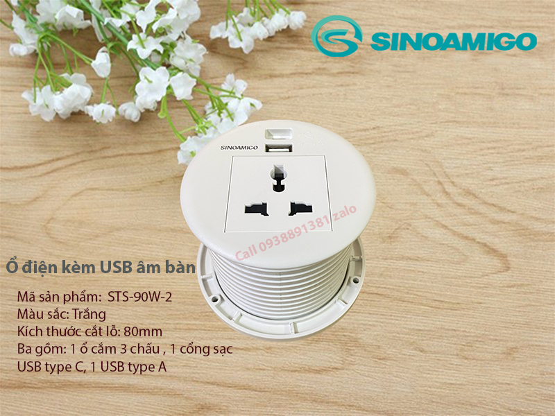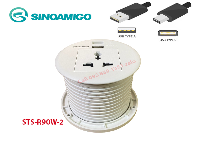 Ổ Cắm Âm Bàn Sinoamigo STS-R90-2: Hiện Đại và Tiện Nghi Cho Bàn Làm Việc, Bàn Học..