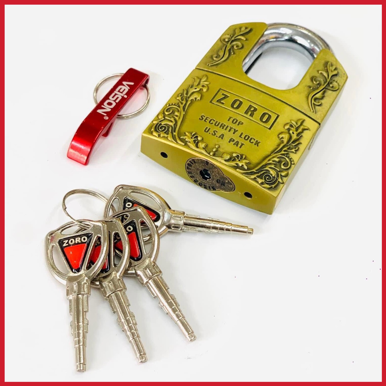 Ổ KHÓA ZORO CHÌA MUỖNG SIZE ĐẠI LOẠI LỚN 7 PHÂN • Chất liệu: Hợp kim sắt, lõi đồng thau, chịu lực tốt cứng và chắc Size khóa ngang 7cm cao 10cm, Trọng lượng 500G