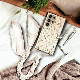 Ốp Lưng TPU Chỉ Nổi Họa Tiết Hoa Kèm Quai Khăn Lụa Sang trọng Cho Samsung S25 Ultra / S24 Ultra / S23 Ultra Chất Liệu : Nhựa TPU dẻo dày dặn Mặt lưng simili