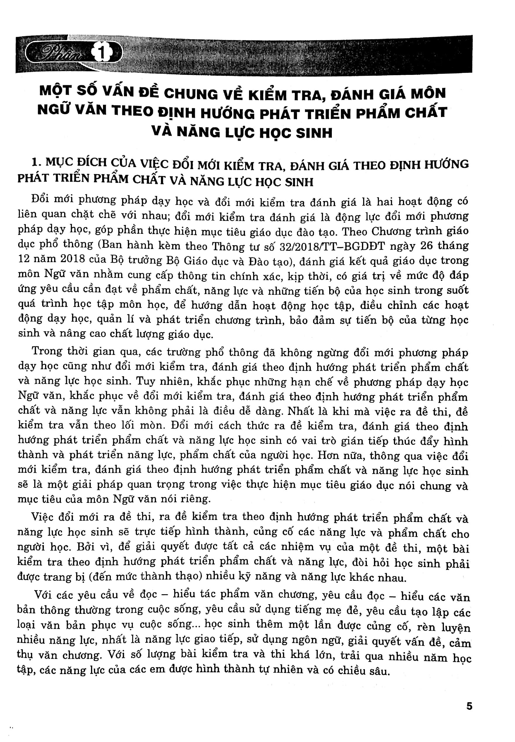 Phần 1. Một số vấn đề chung về kiểm tra, đánh giá môn Ngữ văn theo định hướng phát triển phẩm chất và năng lực học sinh