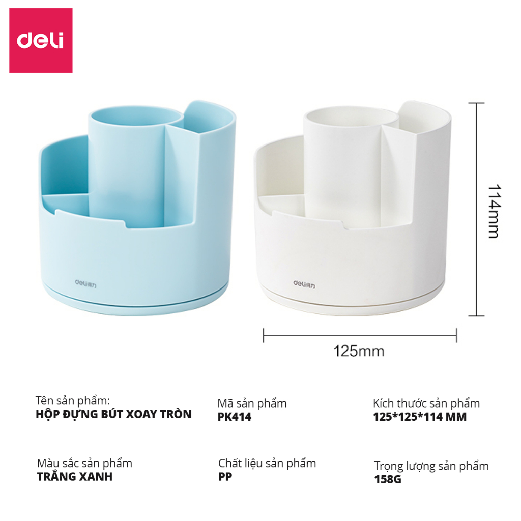 ✨Ống Bút Xoay 360 Độ Deli - Hộp Đựng Bút Tròn Nhiều Ngăn Để Bàn Tích Hợp Giá Đỡ Điện Thoại - Tặng Kèm Sticker