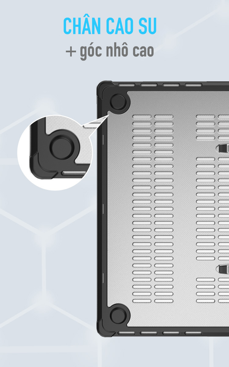 Tản nhiệt hiệu quả với chân đế và lỗ thoát khí giúp Mac không bị quá nhiệt khi sử dụng trong thời gian dài, bảo vệ hiệu suất và tuổi thọ linh kiện bên trong