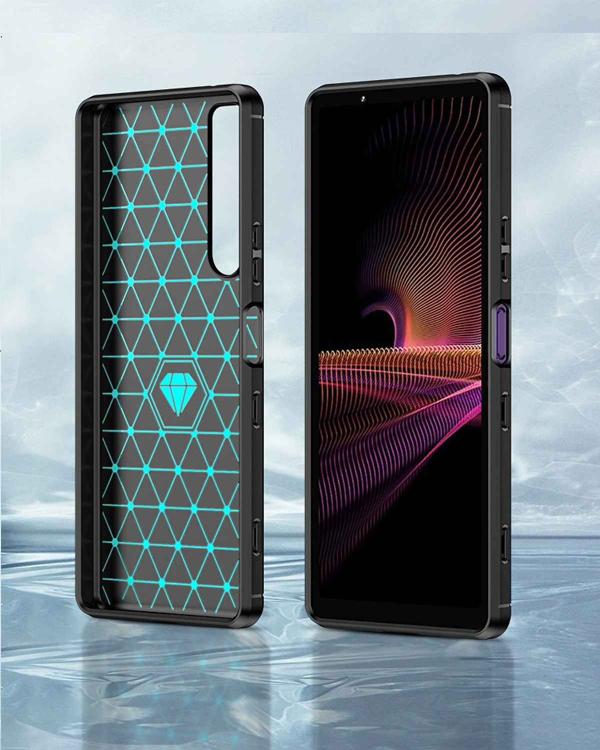 Ốp lưng chống sốc Sony Xperia 5 Mark 3 Vân Sợi Carbon được thiết kế với 2 dải carbon trên dưới tuyệt đẹp, độc đáo, sang trọng Ốp lưng được làm từ chất liệu nhựa