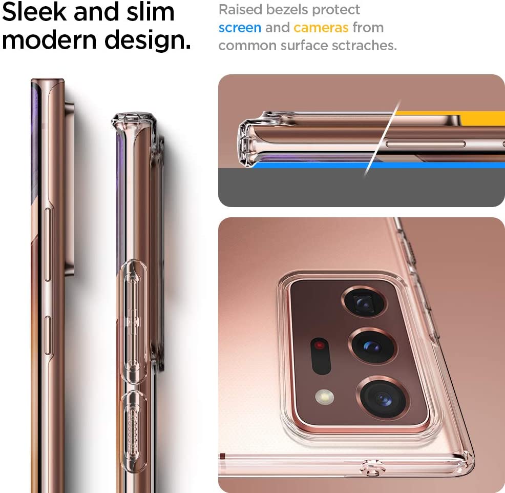 Toàn bộ thiết kế sang trọng đẳng cấp của  Samsung Galaxy Note 20 Ultra đều được phô bày khi bạn sử dụng ốp lưng trong suốt.