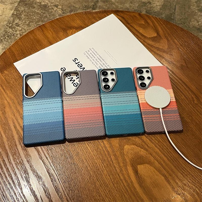- Ốp lưng nhựa cứng vân carbon , thổ cẩm có vòng hỗ trợ sạc không dây từ tính tiện lợi cho máy Samsung Galaxy S24 Ultra / S23 Ultra - Mặt lưng nhựa cứng
