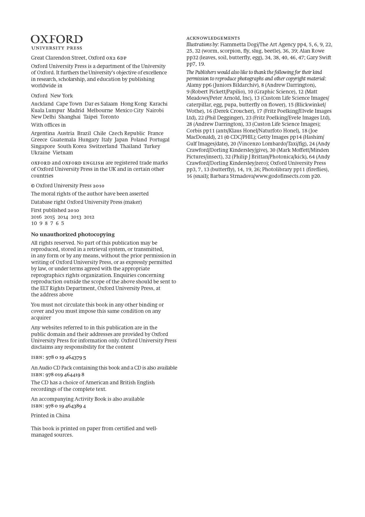 Mua tại TiktokOxford Read and Discover 3 Amazing Minibeasts This exciting new series of non-fiction readers provides interesting and educational content, with activities and project work. The readers are graded at four levels, from 3 to 6, suitable for students from age 8 and older. They can support Content and Language Integrated Learning (CLIL), and cover a broad range of topics, within three curriculum areas: The World of Science and Technology The Natural World The World of Arts and Social Studies