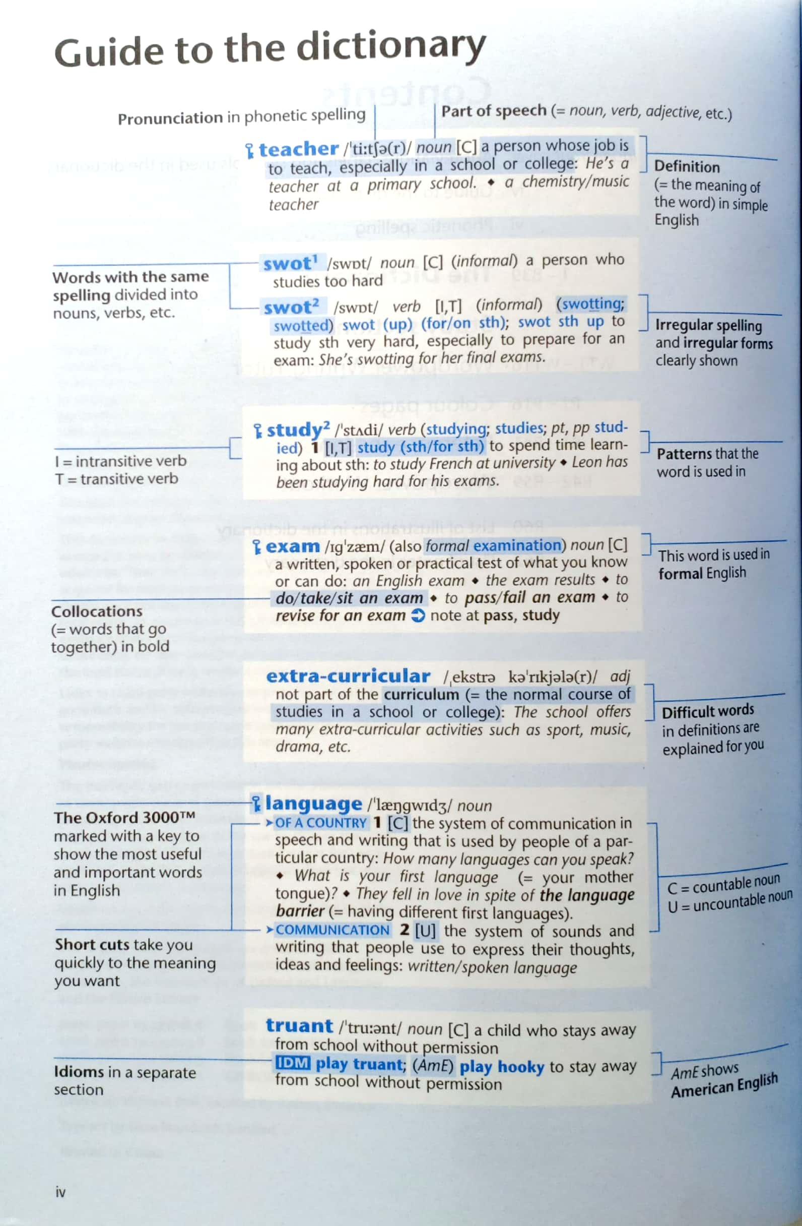 Updated with over 500 new words, phrases and meanings, Oxford Wordpower Dictionary is a corpus-based dictionary that provides the tools intermediate learners need to build vocabulary and prepare for exams. Oxford 3000TM keyword entries show the most important words to know in English. This edition includes new Topic Notes, Exam Tips and Writing Tips, and a 16-page Oxford Writing Tutor. Students can search the A-Z dictionary by word or topic on the CD-ROM, and use the exercises to practise for international exams. NEW on the CD-ROM: Oxford iWriter for B1-B2 students to develop writing skills, and the iGuide, an interactive tutorial to help students explore dictionary entries.