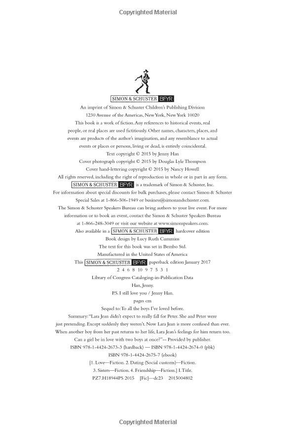 Given the way love turned her heart in the New York Times bestselling To All The Boys I've Loved Before, which School Library Journal called a "lovely, lighthearted romance," it's no surprise that Laura Jean still has letters to write. Lara Jean didn't expect to really fall for Peter. She and Peter were just pretending. Except suddenly they weren't. Now Lara Jean is more confused than ever. When another boy from her past returns to her life, Lara Jean's feelings for him return too. Can a girl be in love with two boys at once? In this charming and heartfelt sequel to the New York Times bestseller To All the Boys I've Loved Before, we see first love through the eyes of the unforgettable Lara Jean. Love is never easy, but maybe that's part of what makes it so amazing.