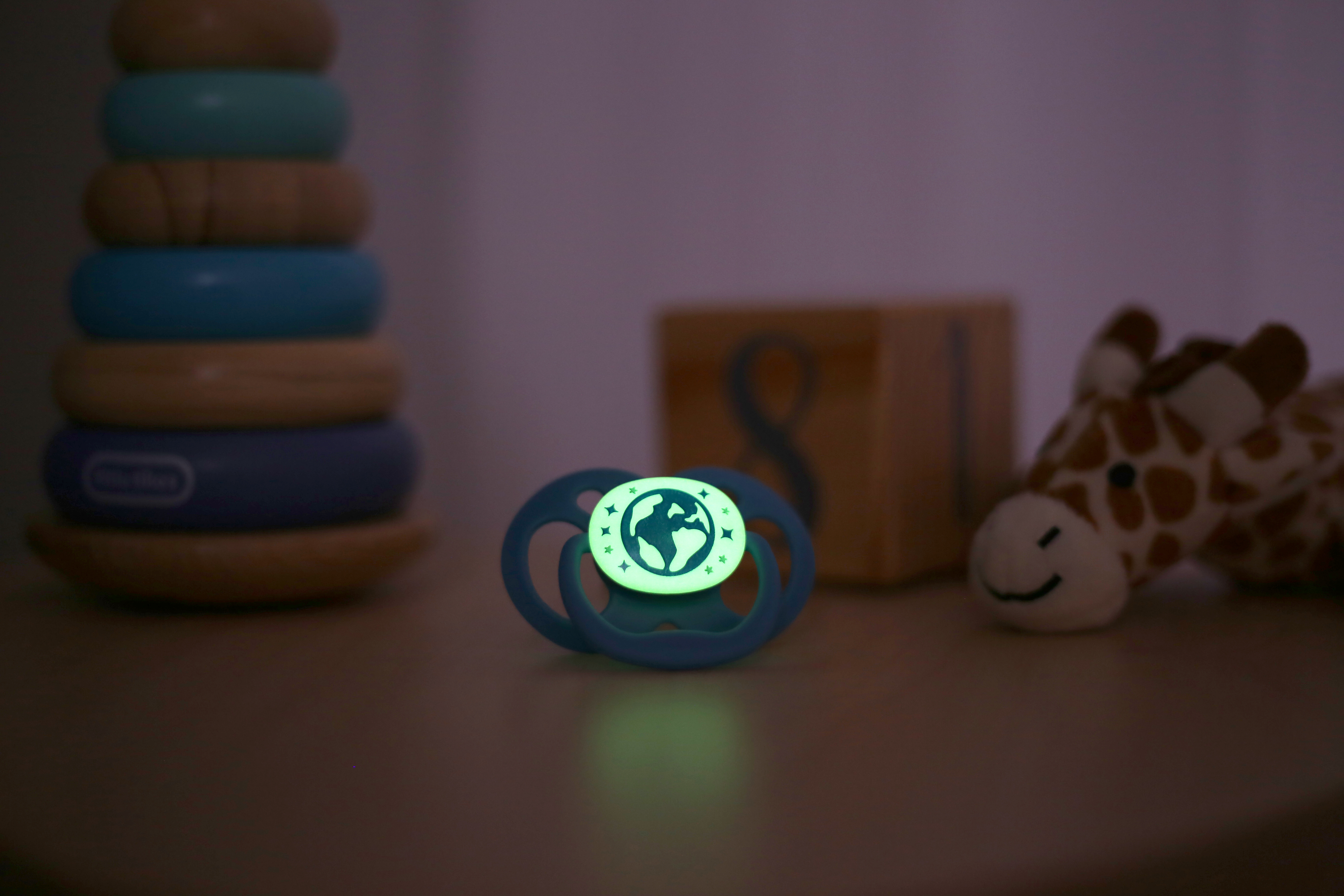 - Ty ngậm sẽ phát sáng trong bóng tối giúp mẹ dễ dàng tìm thấy khi cần