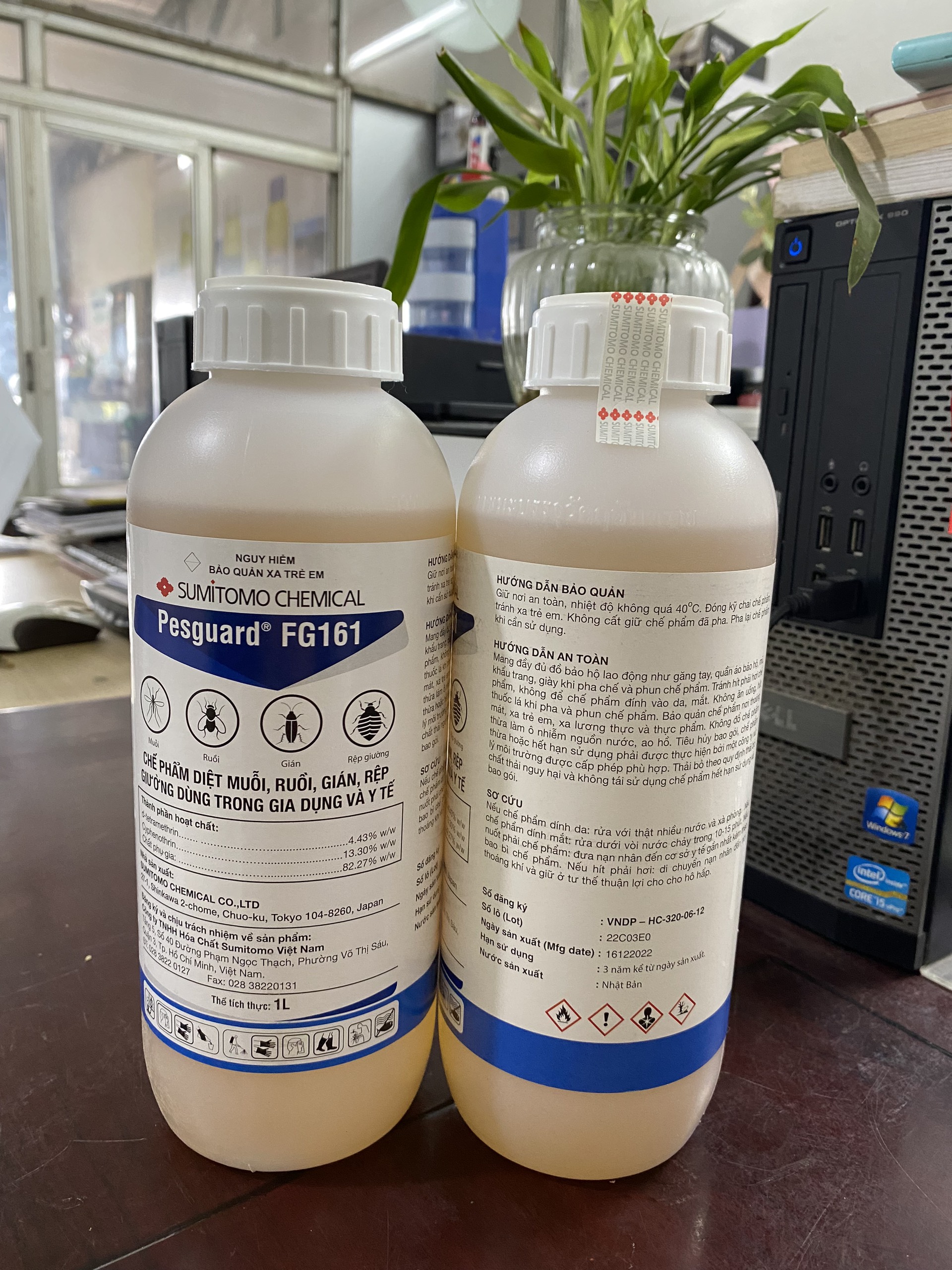 THUỐC DIỆT CÔN TRÙNG PESGUARD FG 161 – HÀNG NHẬT Pesguard FG 161 là chế phẩm thuốc diệt côn trùng sinh học dạng nhũ dầu có công dụng diệt trừ muỗi, gián, kiến, ruồi, rệp, bọ chét, ve. Pesguard FG 161 có thể dùng trong nhà và ngoài trời, phù hợp để kiểm soát các quần thể muỗi vằn truyền bệnh sốt xuất huyết, các vector muỗi sốt rét, Zika, Chikungunya, phát ban Pesguard FG 161 được xem là một trong những loại thuốc diệt muỗi tốt nhất hiện nay và có thể phòng trừ hầu hết các loài côn trùng trong nhà. Sản phẩm hiệu quả cao, tỷ lệ pha thấp, tồn lưu kéo dài, có mùi hắc nhẹ, an toàn không độc hại cho người sử dụng. THÀNH PHẦN VÀ CƠ CHẾ HOẠT ĐỘNG -d-tetramethrin ………… 4.43% w/W (44,3g / L) -Cyphenothrin …………. 13.30% w/W (133g / L) -Phụ gia HƯỚNG DẪN CÁCH SỬ DỤNG PESGUARD FG 161 Diệt muỗi, ruồi: Phun ngoài trời: phun sương vào các bụi cây, bãi cỏ, nhà kho, hố ga hoặc những nơi có muỗi và ruồi ẩn náu. Chú ý phun vào thời tiết khô nắng, nên phun trước 10 sáng hoặc sau 4 giờ chiều là thời điểm côn trùng hoạt động mạnh. Phun trong nhà: phun tồn lưu lên tường và các bề mặt khác trong nhà để diệt muỗi. Cần phun đều tường trong và ngoài nhà, phun dưới gầm giường hoặc gầm bàn gầm tủ. Chú ý xử lý luôn các lỗ thoát nước để diệt ấu trùng của muỗi. Phun ULV: với phương pháp này bạn cần một chiếc máy phun côn trùng ULV chuyên dụng. Pha 1 lít hóa chất Pesguard cho 16 lít nước sạch, tiến hành phun không gian theo định mức 1/2 lít dung dịch đã pha cho 1 ha. Diệt gián, kiến: Pha 10ml hóa chất Pesguard FG 161 với 1 lít nước để phun trực tiếp lên bề mặt nơi có gián và kiến thường xuất hiện. Chỉ cần phun lên tường và dưới chân tường, không cần thiết phải lau chùi bề mặt đã xử lý hóa chất nhằm duy trì tác dụng tồn lưu. Diệt ve, bọ chét, rệp giường: Phun sương lên tường những nơi có ve hiện diện, chú ý ve có thể đậu trên trần nhà nên cần phun trên cao. Đối với bọ chét bạn chỉ cần phun dưới sàn nhà, để khô 1 giờ rồi vệ sinh lại bình thường. Để diệt rệp giường bạn cần phun hỗn hợp thuốc diệt côn trùng Pesguard FG 161 vào khung giường, chân giường, nệm và cả lên tường LỜI KHUYÊN KHI SỬ DỤNG PESGUARD FG 161 Pha đúng tỷ lệ nhà sản xuất quy định Mang bao tay và khẩu trang khi làm việc Không ăn uống hoặc hút thuốc trong quá trình phun thuốc Bảo quản xa tầm tay trẻ em, nguồn lương thực, tránh ánh nắng trực tiếp Tránh để hóa chất bám vào da Rửa da dưới vòi nước trong 5 phút nếu bị tiếp xúc Không đổ chế phẩm thừa xuống ao, hồ, sông, suối hoặc nguồn nước sinh hoạt Dùng bao nhiêu pha bấy nhiêu, không pha sẵn Đóng chặt nắp chai sau khi sử dụng Không tái chế, sử dụng lại vỏ chai dưới bất kỳ hình thức nào