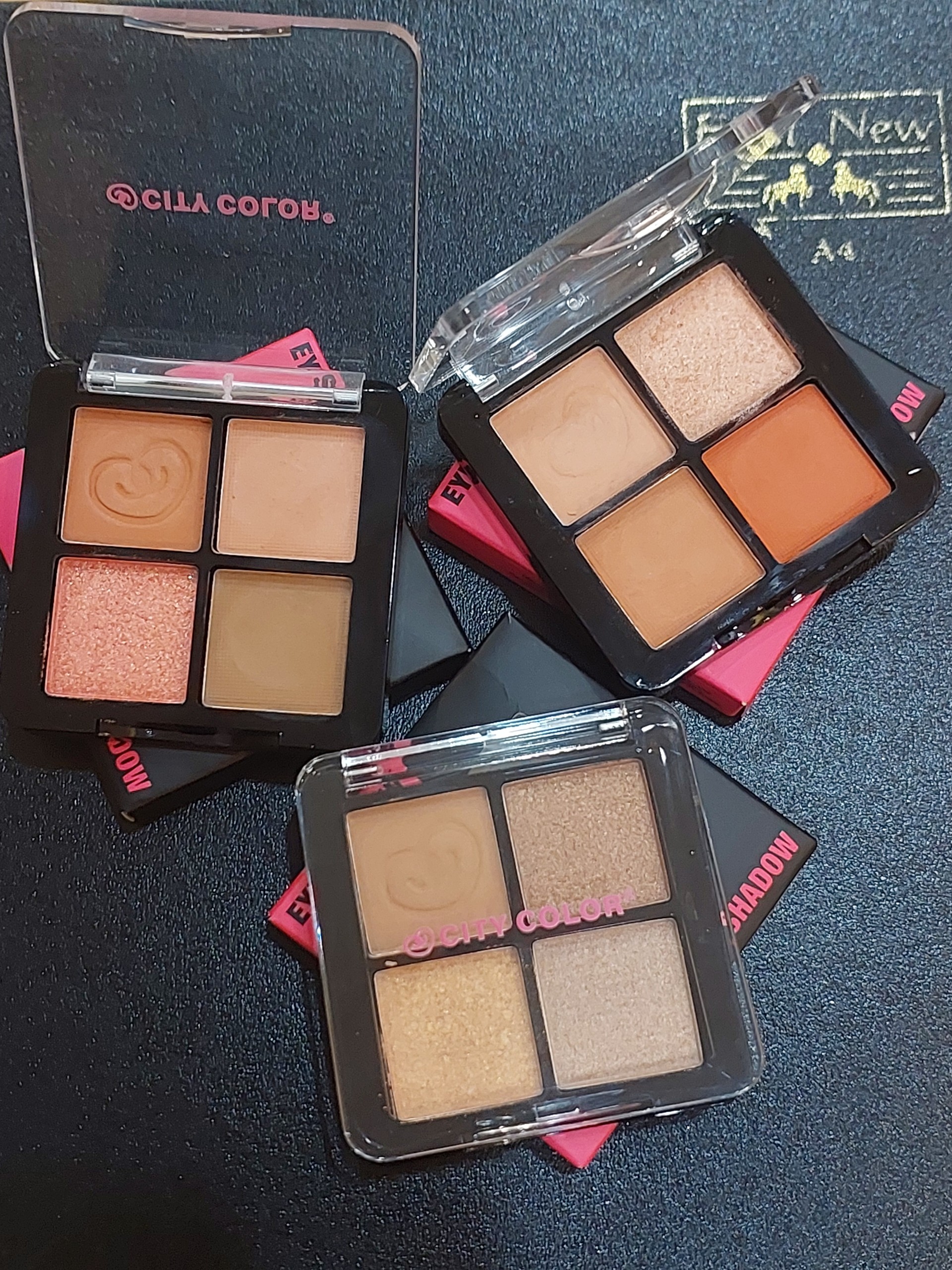 bảng phấn mắt 4 ô "The Nudes Palette" của City Color, một bảng màu mắt với các tông màu trung tính, tự nhiên, phù hợp với phong cách trang điểm hàng ngày. Bảng phấn mắt