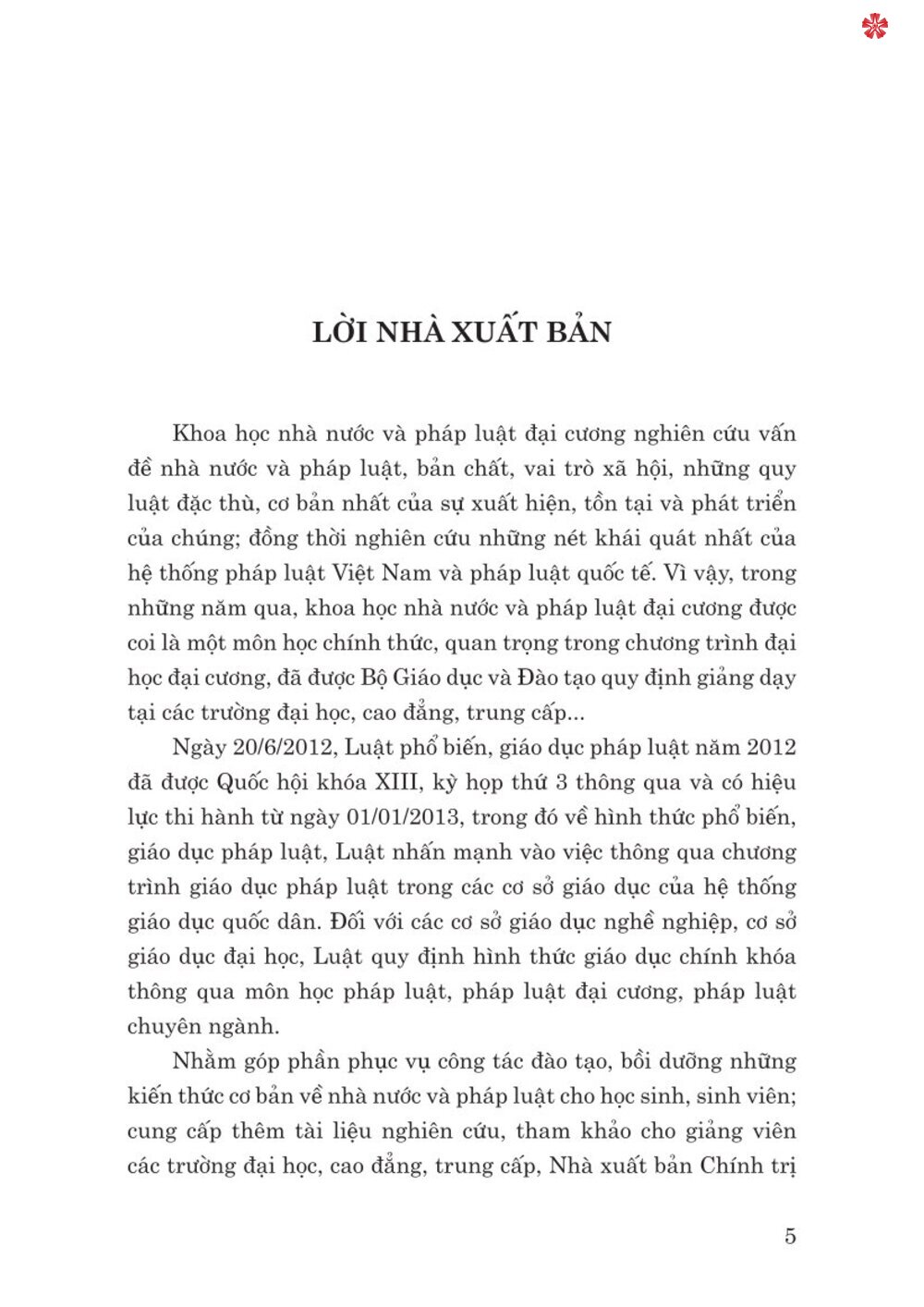 Nhằm góp phần phục vụ công tác đào tạo, bồi dưỡng những kiến thức cơ bản về nhà nước và pháp luật cho học sinh, sinh viên; cung cấp thêm tài liệu nghiên cứu, tham