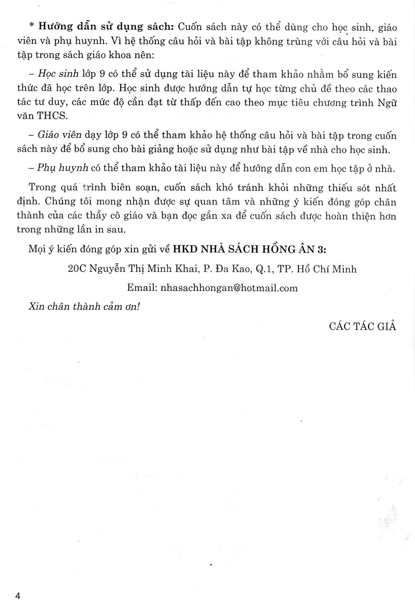 • Học sinh lớp 9 có thể sử dụng tài liệu này để tham khảo nhằm bổ trợ thêm kiến thức đã học trên lớp. Học sinh được hướng dẫn tự học từng chủ đề theo các thao tác tư duy, các mức độ cản đạt từ thấp đến cao theo mục tiêu chương trình Ngữ văn THCS.