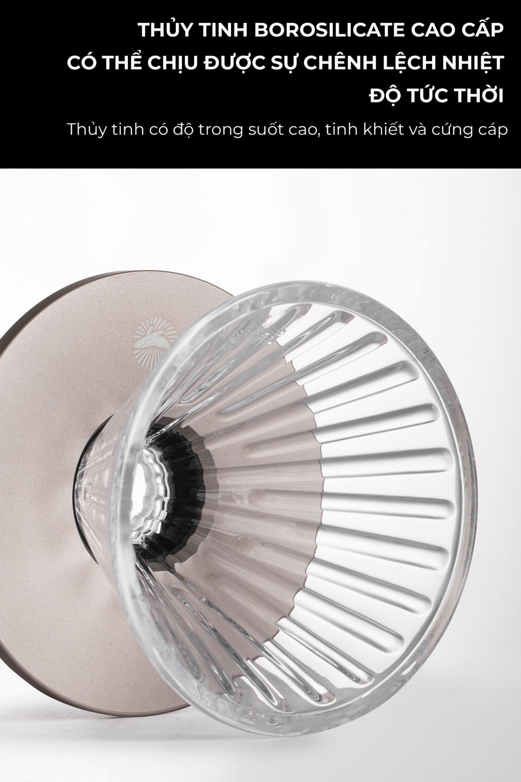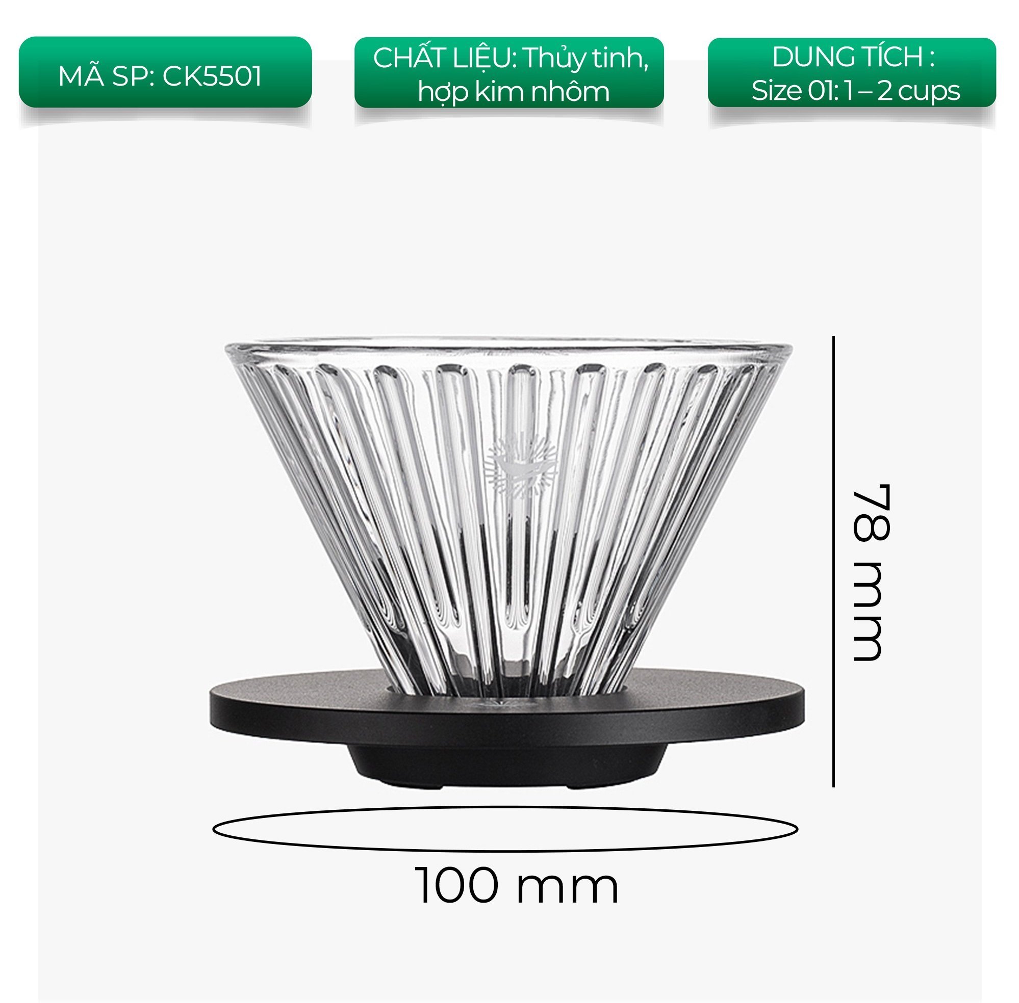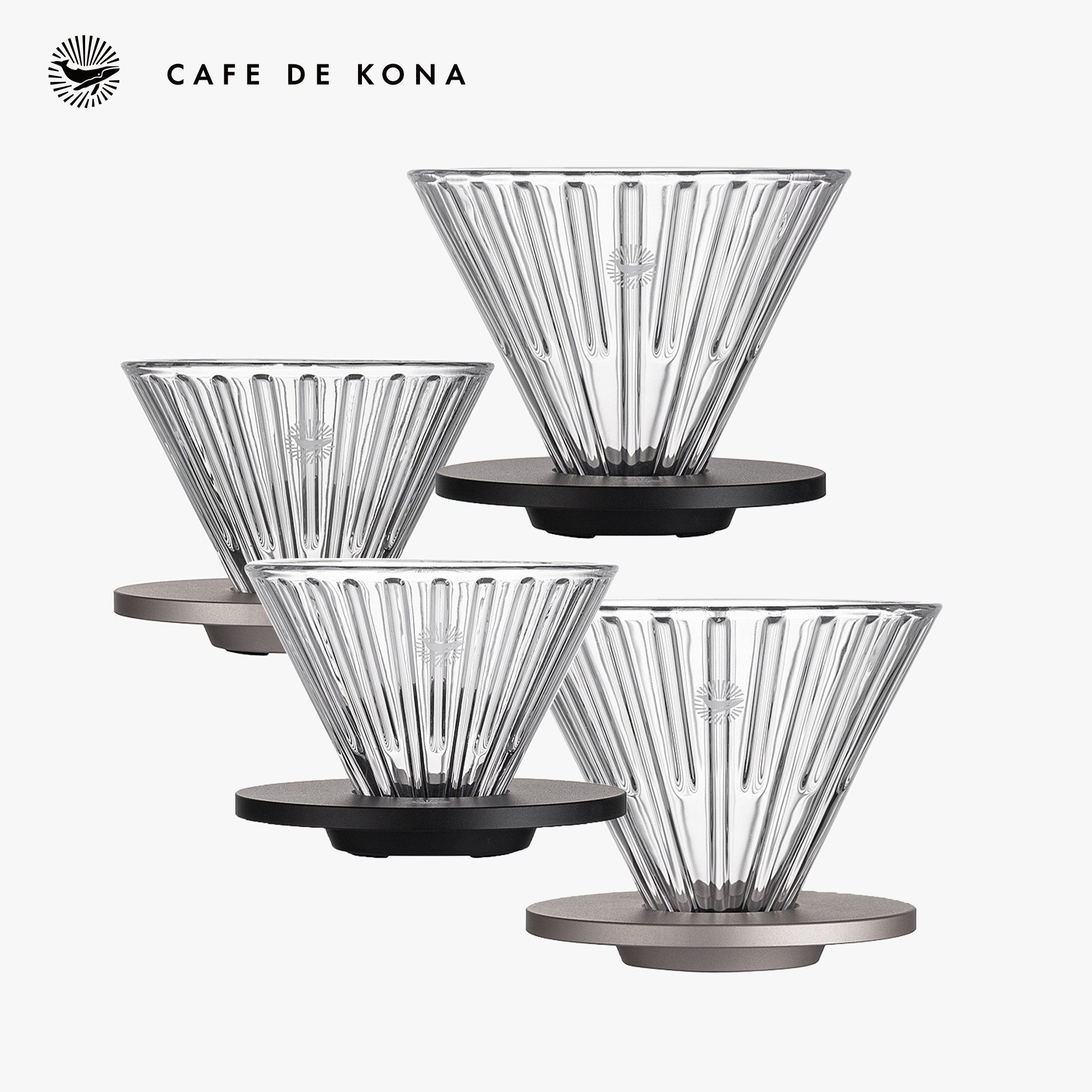 ✨Phễu thuỷ tinh V60 rãnh thẳng đế nhôm Cafede Kona