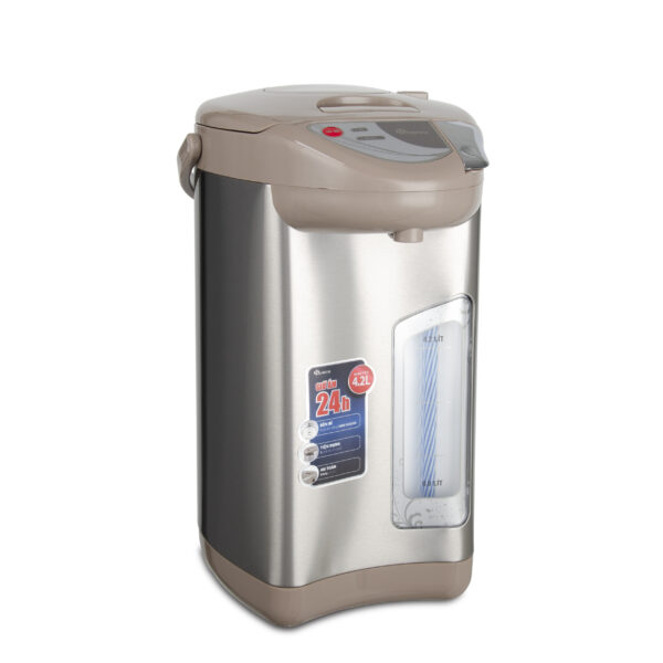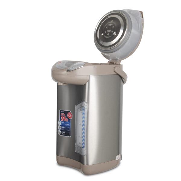 - Dung tích: 4.5 lít - Công suất: 700W - Chức năng: Đun sôi, Giữ nóng - Mức nhiệt giữ nóng: 3 mức: 60, 85, 98°C - Hẹn giờ đun sôi: Sau 6 tiếng -