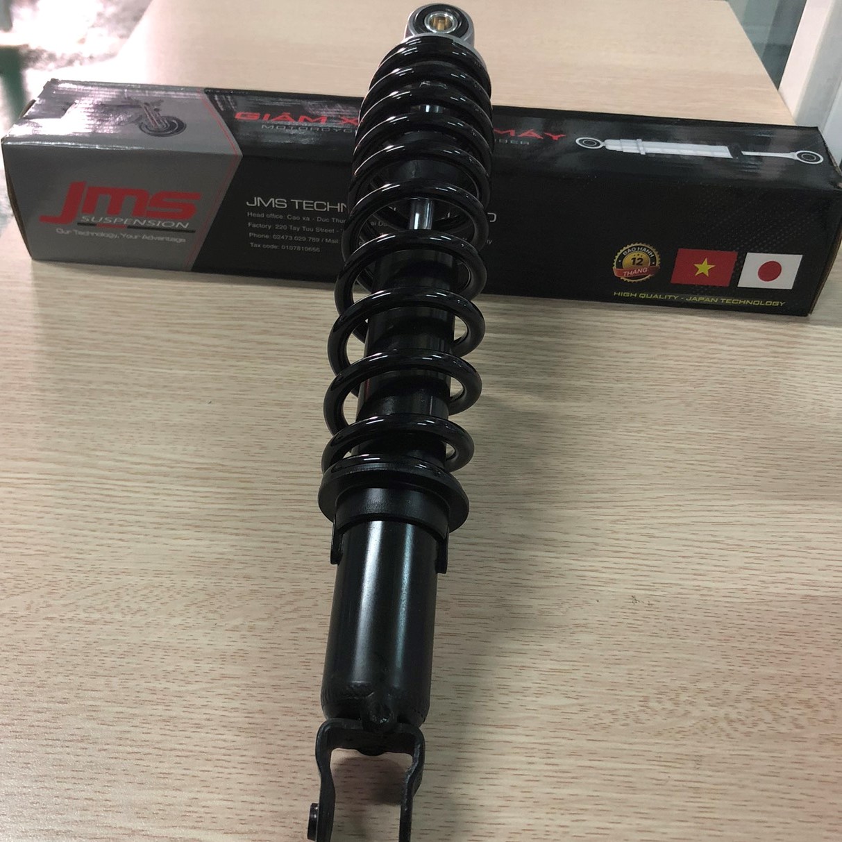 CHIỀU DÀI PHUỘC NHÚN: 340 mm Xuất xứ: Công ty TNHH công nghệ JMS Hàng mới 100% Dây chuyển sản xuất công nghệ Việt - Nhật Các tính năng nổi trội của Phuộc( giảm xóc)