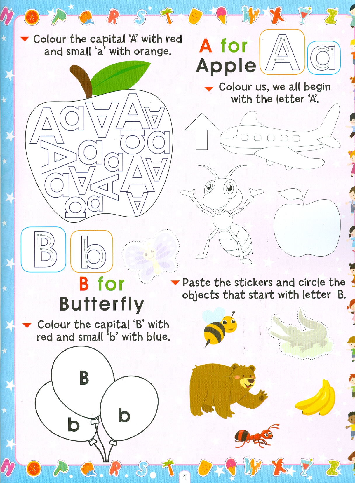 (Giới thiệu các chữ cái trong bảng chữ cái cho người mới bắt đầu với cuốn sách sáng tạo 'Chơi với nhãn dán - ABC'. Cuốn sách tương tác này có đầy đủ các hình dán tươi sáng về những vật dụng hàng ngày mời gọi trẻ em thêm hình dán cho mỗi bảng chữ cái hoặc đồ vật còn thiếu.