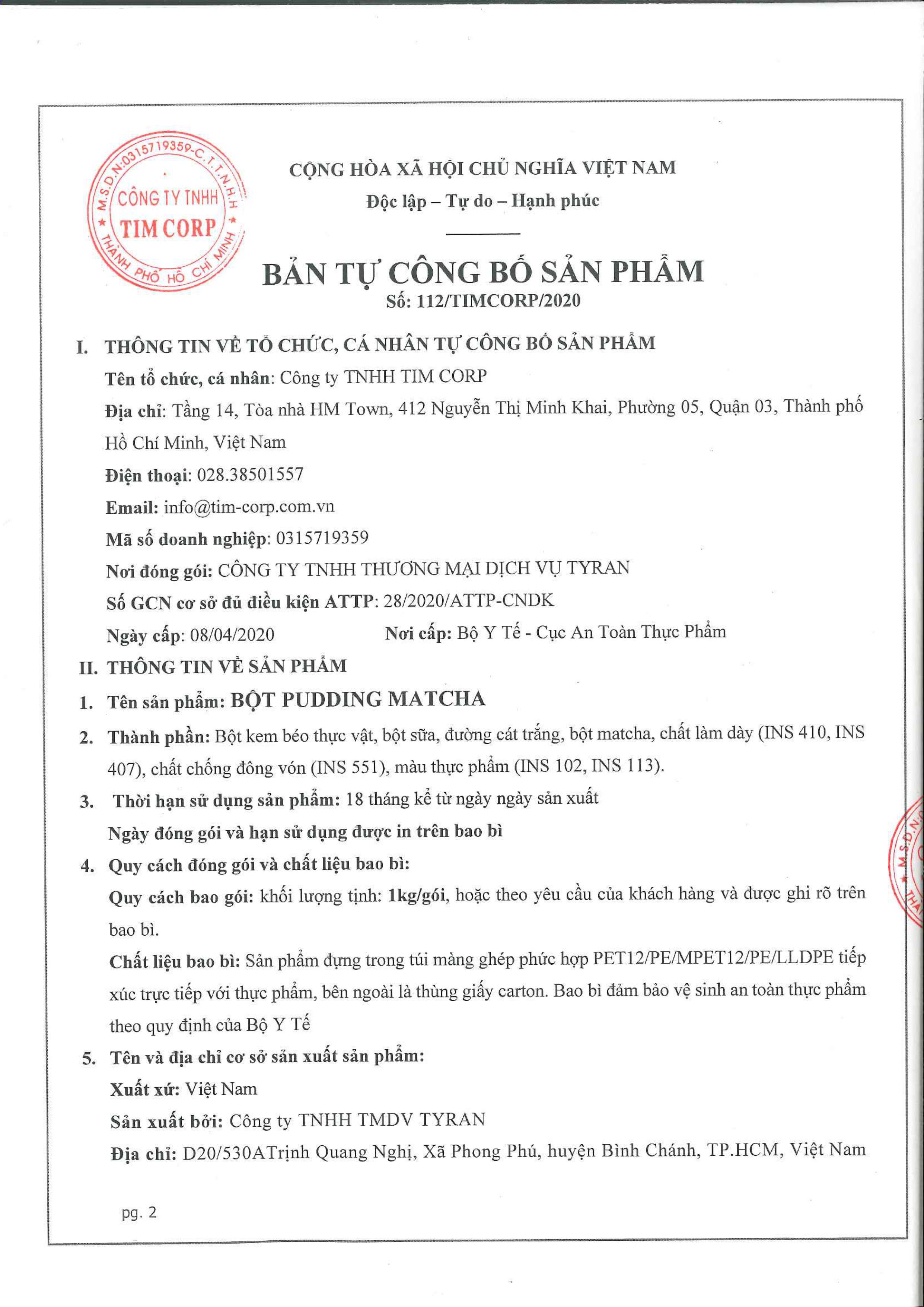 Chứng nhận: Sản phẩm được sản xuất tại nhà máy Gia Thịnh Phát - đạt chứng nhận tiêu chuẩn chất lượng quốc tế ISO 22000:2018. Mô tả: ƯU ĐIỂM CỦA BỘT PUDDING SÔ CÔ LA