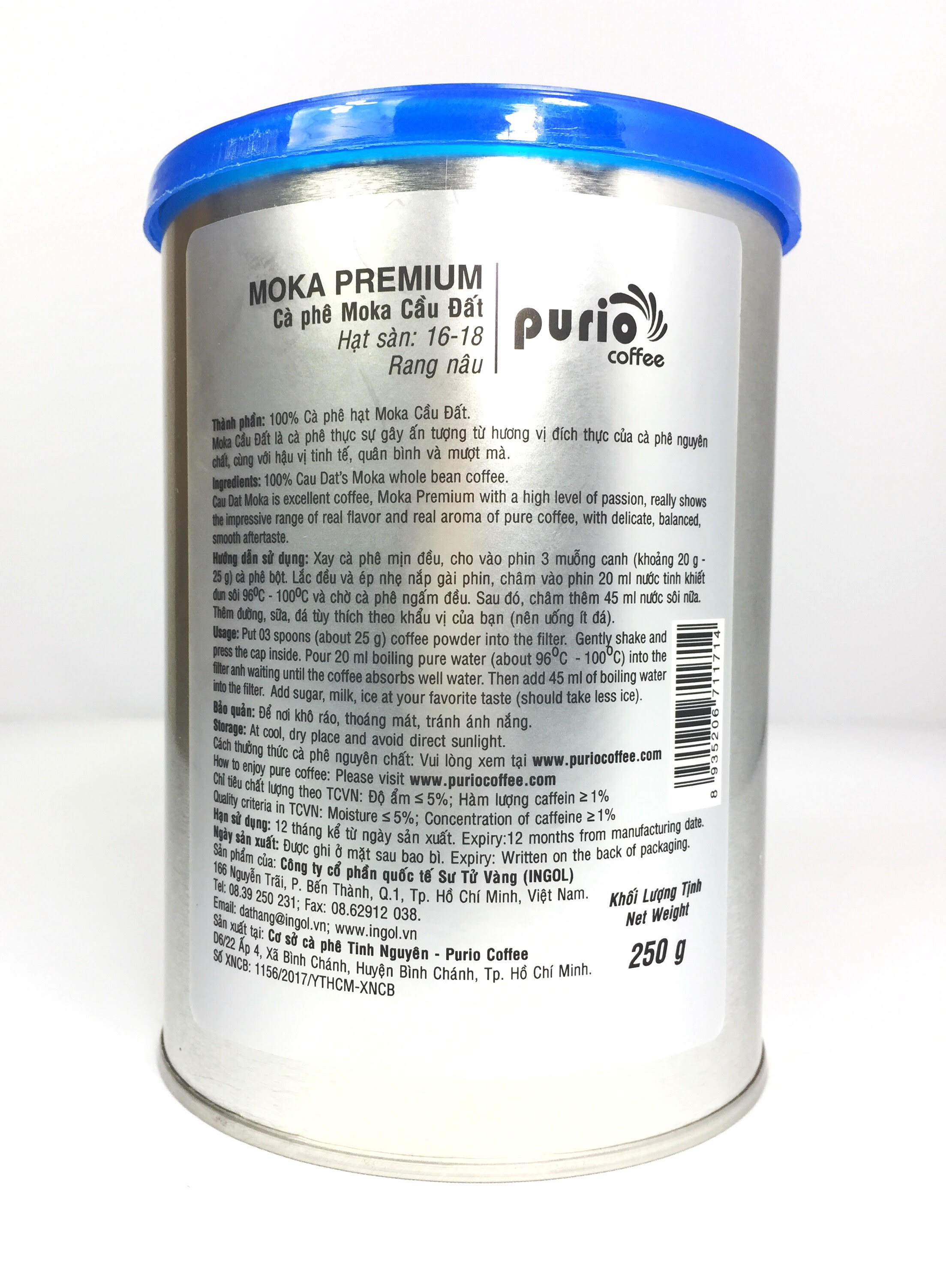 Purio coffee, trân trọng giới thiệu dòng sản phẩm cà phê cao cấp Moka Premium, được sản xuất từ những hạt Moka Cầu Đất, Đà lạt.