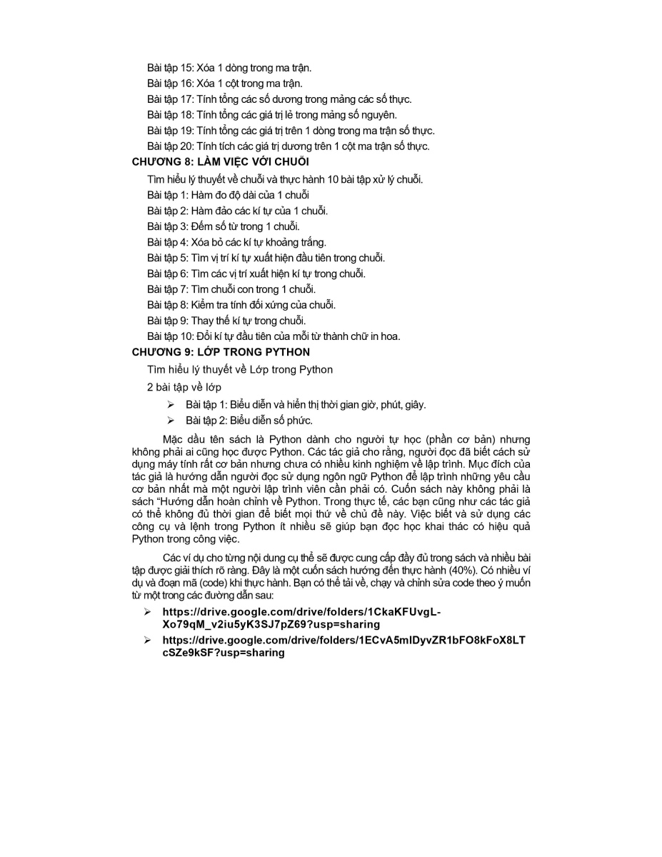 Bài Tập Thực Hành Python (Phần Cơ Bản) Cuốn sách này giới thiệu đến bạn đọc ngôn ngữ Python, một trong những ngôn ngữ được sử dụng rộng rãi nhất trên thế giới. Phổ