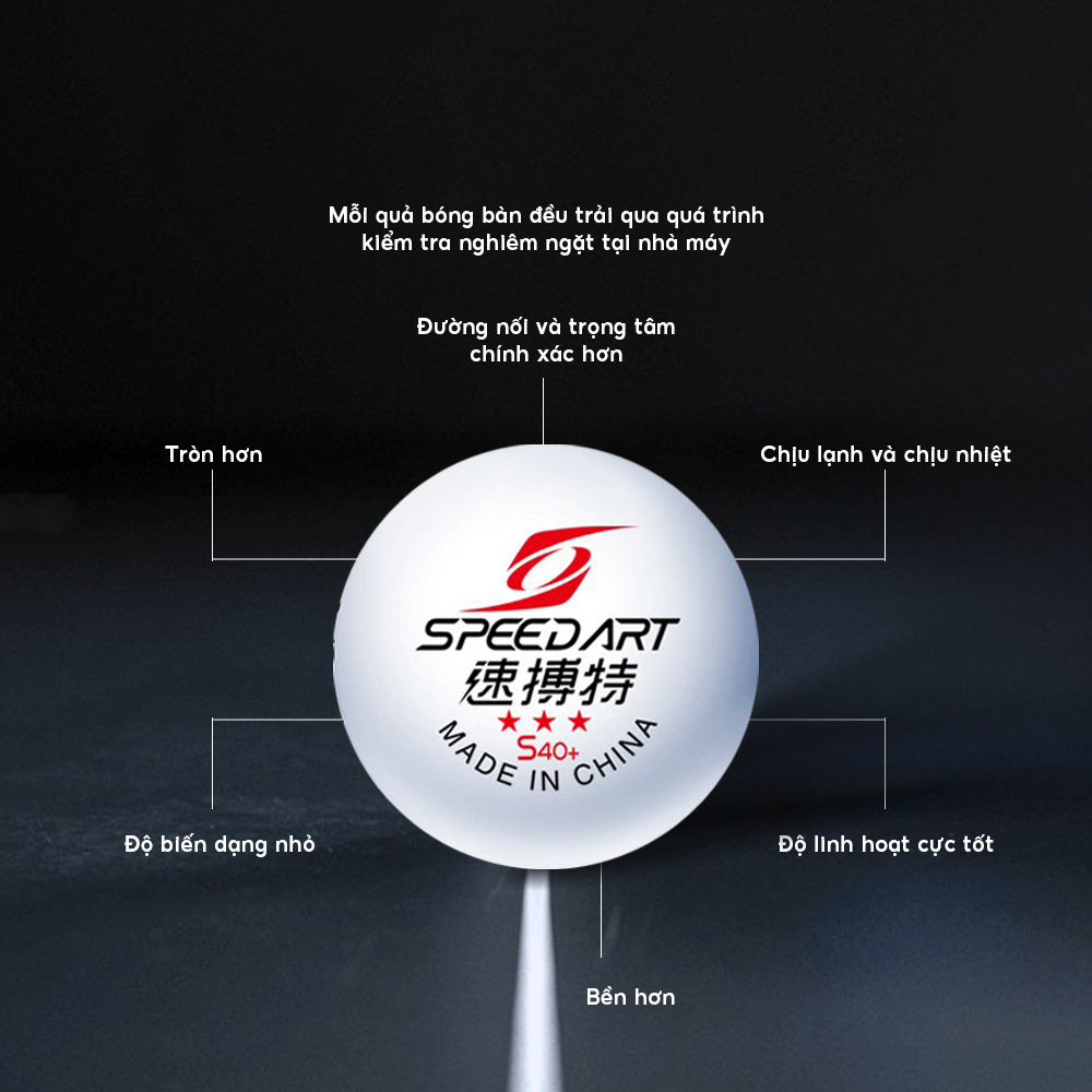 Với thiết kế tỉ mỉ và sử dụng công nghệ sản xuất tiên tiến, quả bóng bàn Speed Art có độ nảy rất ổn định và đồng đều. Điều này giúp người chơi dễ dàng kiểm soát và thực hiện các kỹ thuật phức tạp như topspin, sidespin và backspin một cách chính xác.