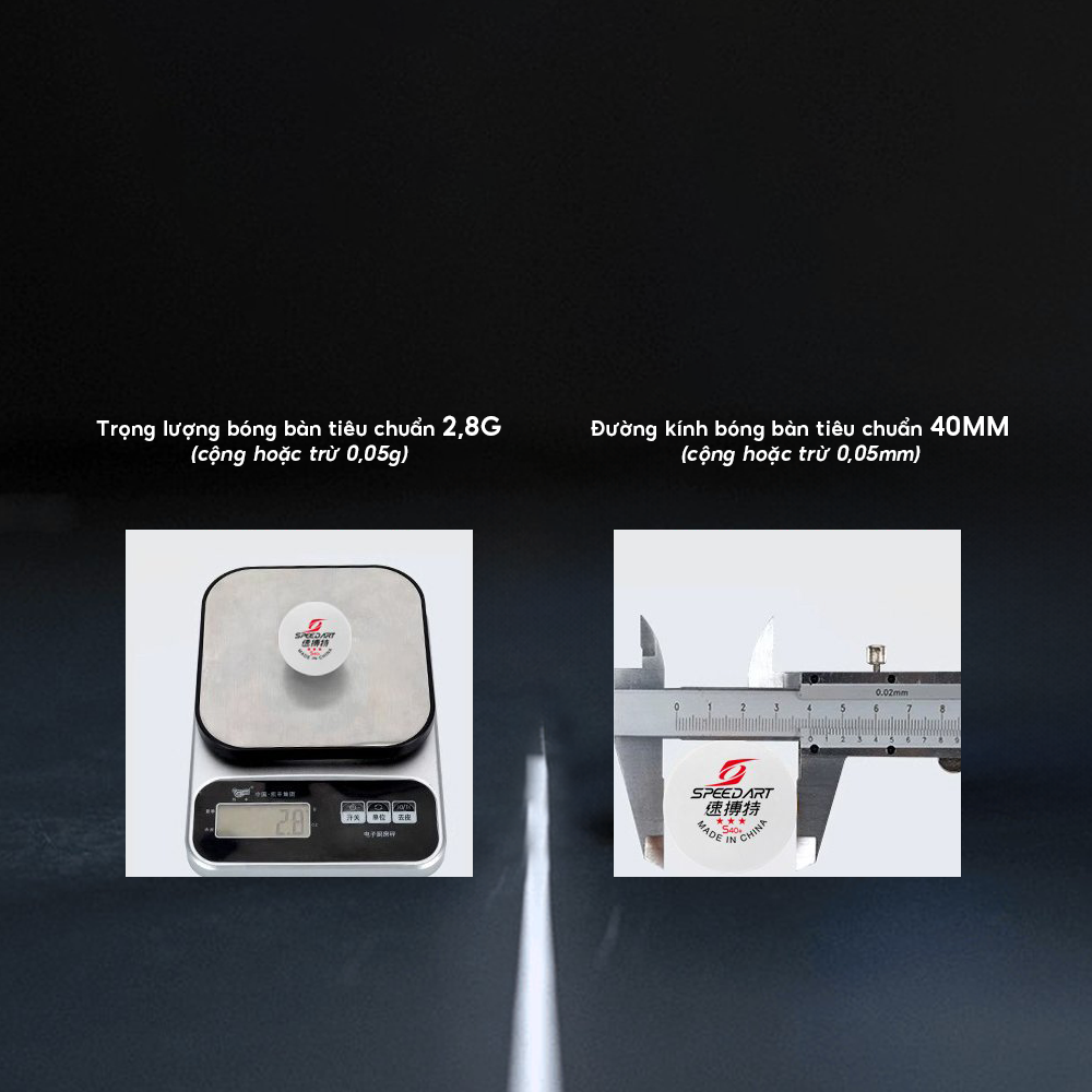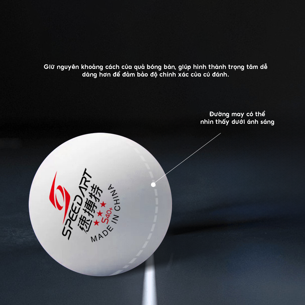 Quả bóng bàn Speed Art được làm từ nhựa ABS, một loại vật liệu bền bỉ và có độ đàn hồi tốt. Điều này giúp quả bóng không dễ bị biến dạng hoặc nứt vỡ khi va chạm mạnh, đồng thời đảm bảo độ nảy ổn định qua nhiều lần sử dụng.