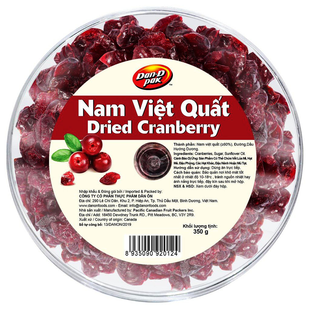 Với sản phẩm tươi sống, trọng lượng thực tế có thể chênh lệch khoảng 10%.     Nam việt quất khô nhập khẩu Canada - dried cranberry Dan.D.Pak không chất bảo quản,giải độc tố trong cơ thể,làm đẹp da,là liều thuốc hữu hiệu để hạn chế nguy cơ bị ung thư, đột quỵ, nhiễm virus, bệnh tim và bệnh nhiễm trùng men             được sản xuất hoàn toàn từ 100% quả nam việt quất tươi tự nhiên giữ được hương vị thơm ngon, đặc trưng. Sản phẩm không có chất béo, màu nhân tạo, chất bảo quản, gluten. Nhờ công nghệ sấy tiên tiến nên những quả nam việt quấtkhông quá khô mà vẫn giữ được độ ẩm nhất định, giúp cho chất lượng và hương vị củaquả nam việt quấttăng lên nhiều lần so với khi còn tươi. Hương vị:Ngọt nhẹ, dẻo, mềm và thơm mùi của vị nam việt quất tự nhiên. Nam việt quất cùng họ với trái việt quất (blueberry), nhưng cây việt quất có thân gỗ dày hơn, bụi mọc cao hơn, hoa hình chuông, và cánh hoa không có tính cảm ứng. Nhánh nam việt quất mỏng, không có thân gỗ cứng, lá nhỏ xanh quanh năm, hoa màu hồng sẫm, thụ phấn bằng ong mật. Trái nam việt quất to hơn lá, lúc nhỏ màu trắng, sau chuyển màu dần sang đỏ thẫm khi chín hẳn. *** Những lợi ích sức khỏe của Nam việt quất: 1. Là một liều thuốc hạn chế sự nhiễm trùng đường tiết niệu bằng cách ngăn chặn vi khuẩn bám vào niêm mạc của đường tiết niệu. 2. Gần đây loại trái cây này còn được phát hiện có các thuộc tính giúp giảm vi khuẩn bám dính vào răng miệng, làm giảm sự hình thành các mảng bám trên răng, phòng tránh sâu răng và các bệnh răng miệng tối ưu. 3. Các hợp chất trong trái nam việt quất còn hạn chế một số vi khuẩn có hại gây bệnh để không cho chúng dính vào niêm mạc dạ dày, từ đó giúp ngăn ngừa viêm loét dạ dày. 4. Nó cũng được coi là một loạithực phẩmtuyệt vời cho sức khỏe tốt vì chứa phenol - một chống oxy hóa mạnh mẽ, giúp chống lại các tế bào gốc tự do trong cơ thể. Theo nghiên cứu đã công bố thì nam việt quất có chứa chất phenol nhiều hơn hẳn 20 loại trái cây phổ biến bạn thường ăn. 5. Các nhà nghiên cứu còn tin rằng các hợp chất phenol hay còn được gọi là flavonoid còn có tác dụng giúp giảm nguy cơ mắc bệnh tim mạch, tương tự hiệu quả như rượu vang đỏ. Nghiên cứu cho thấy flavonoid hoạt động bằng cách tăng đường ô xy hóa bên trong mạch máu, bảo vệ cholesterol trong máu. Điều này sẽ khiến sức khỏe tim mạch của bạn được cải thiện rõ rệt.