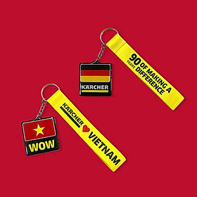 Móc khóa quà tặng kỷ niệm ngày thành lập và phát triển Karcher. Móc khóa bao gồm: - 1 Logo WOW - 1 dải lụa màu vàng Ứng dụng: Móc khóa xe máy, ô