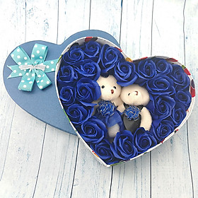 ✨Quà tặng sinh nhật, 8/3 cho bạn gái - hoa hồng sáp hộp tim 2 gấu, màu xanh - H2X