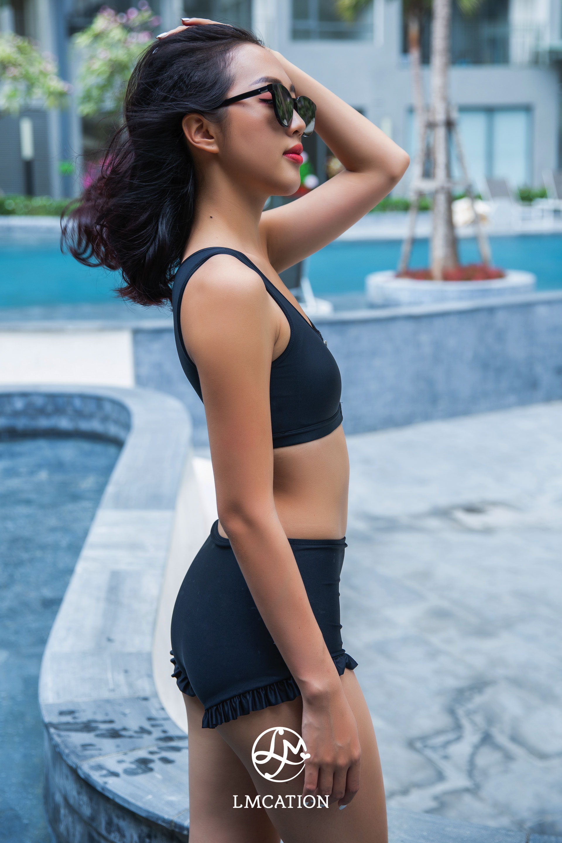 ✨Quần Bơi Lưng Cao Phối Bèo LMcation Estella - Màu Đen