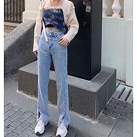 - Tên sản phẩm: Quần Jeans bò nữ cạp cao lưng cao ống rộng xẻ gấu Hàn Quốc