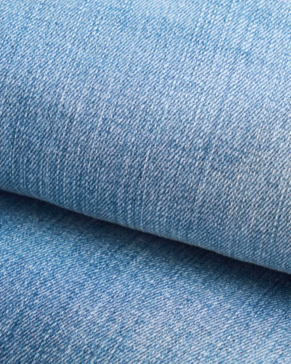 - Chất liệu Denim: Denim là chất liệu được dệt từ một sợi màu và một sợi trắng, mang lại cảm giác dày dặn khi mặc. Vải có độ bền cao và khả năng giữ form dáng rất tốt. Tuy nhiên, do chất liệu dày, khi mặc sẽ có cảm giác bí và nóng hơn so với các loại vải khác.